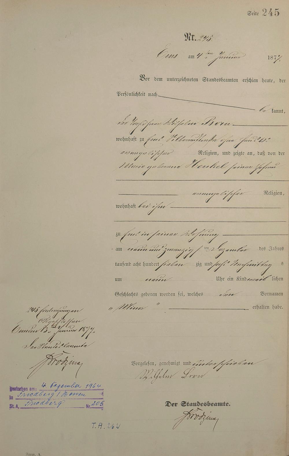 Geburtsregister 1876
