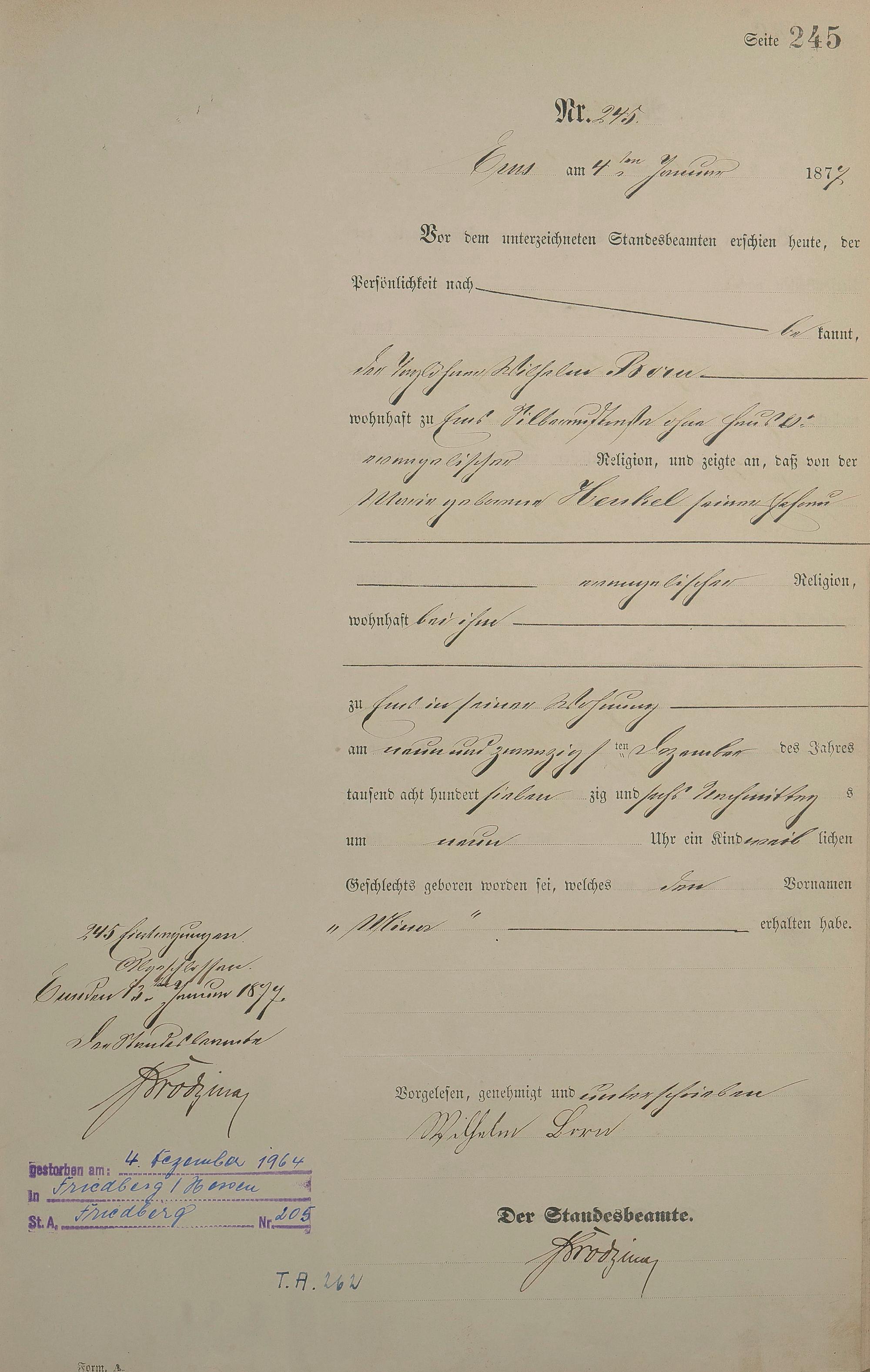1252: Geburtsregister 1876