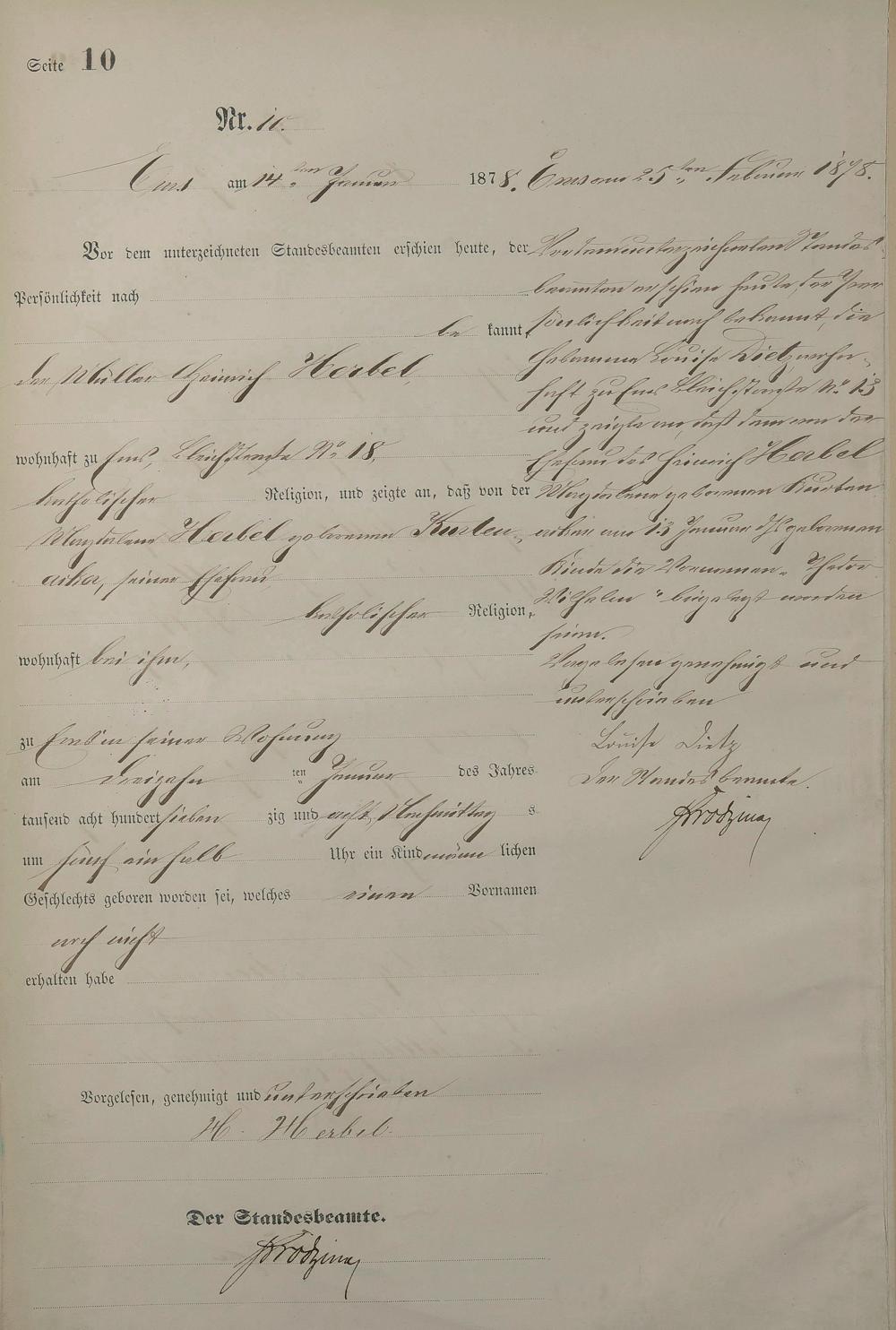1254: Geburtsregister 1878