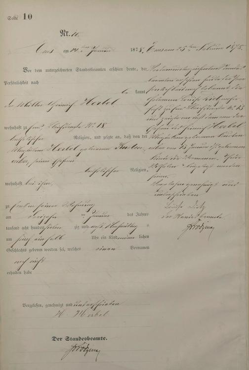 Geburtsregister 1878