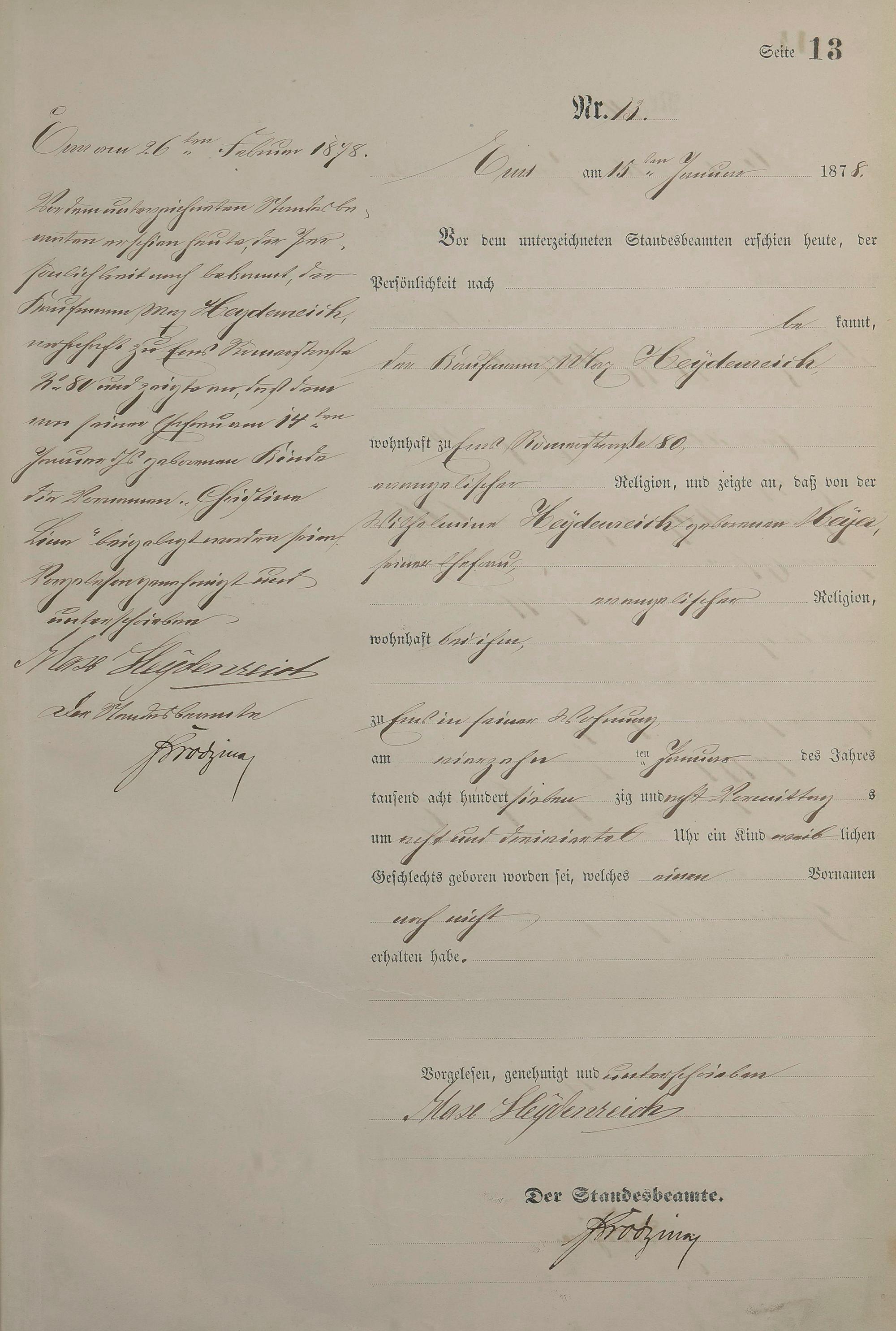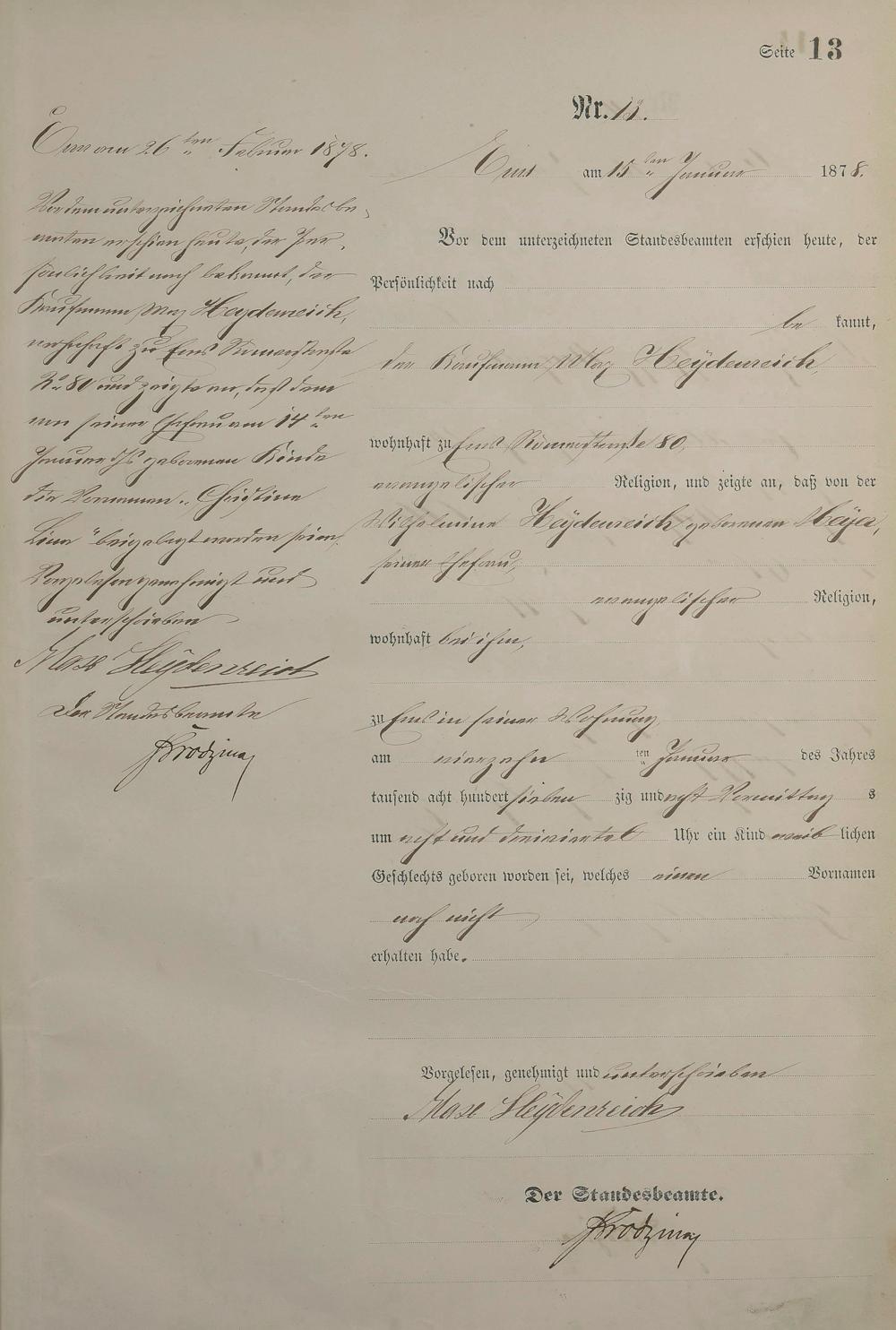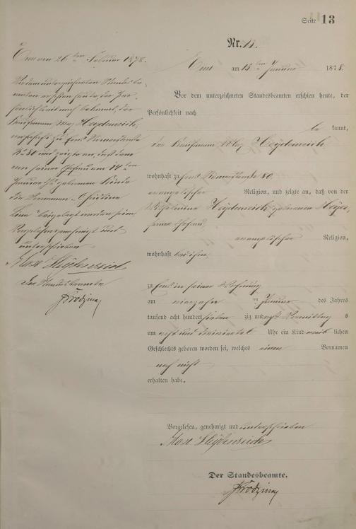 Geburtsregister 1878