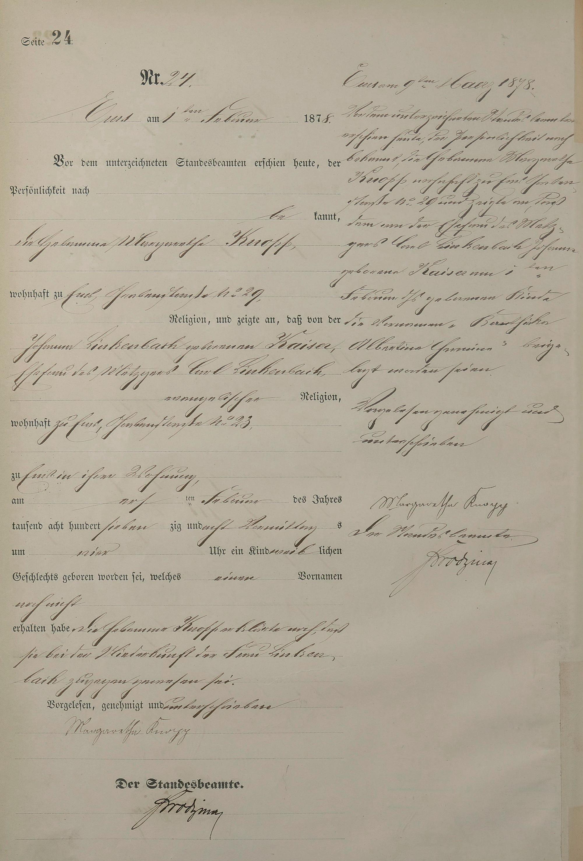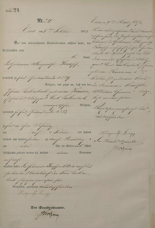 Geburtsregister 1878