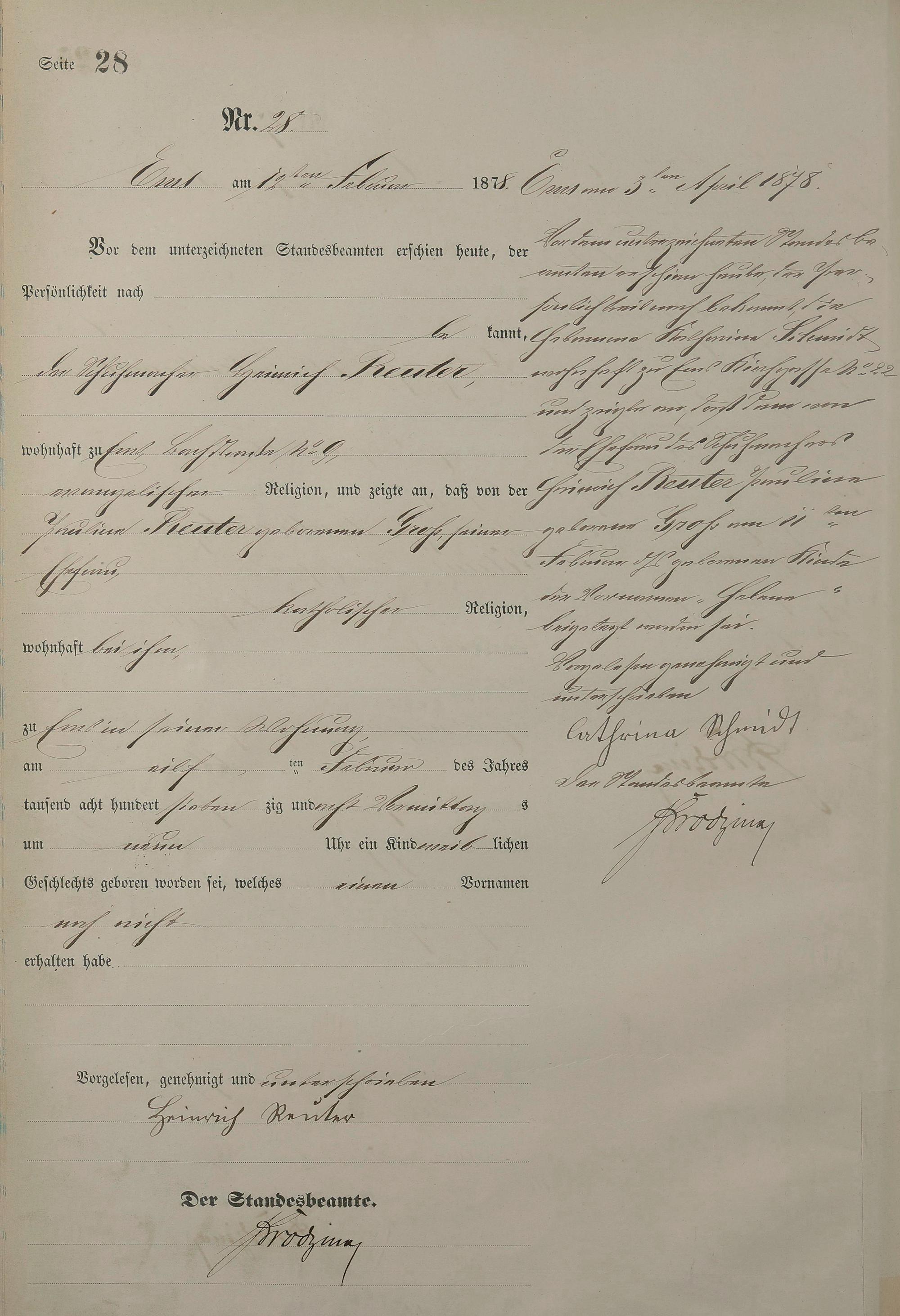 Geburtsregister 1878