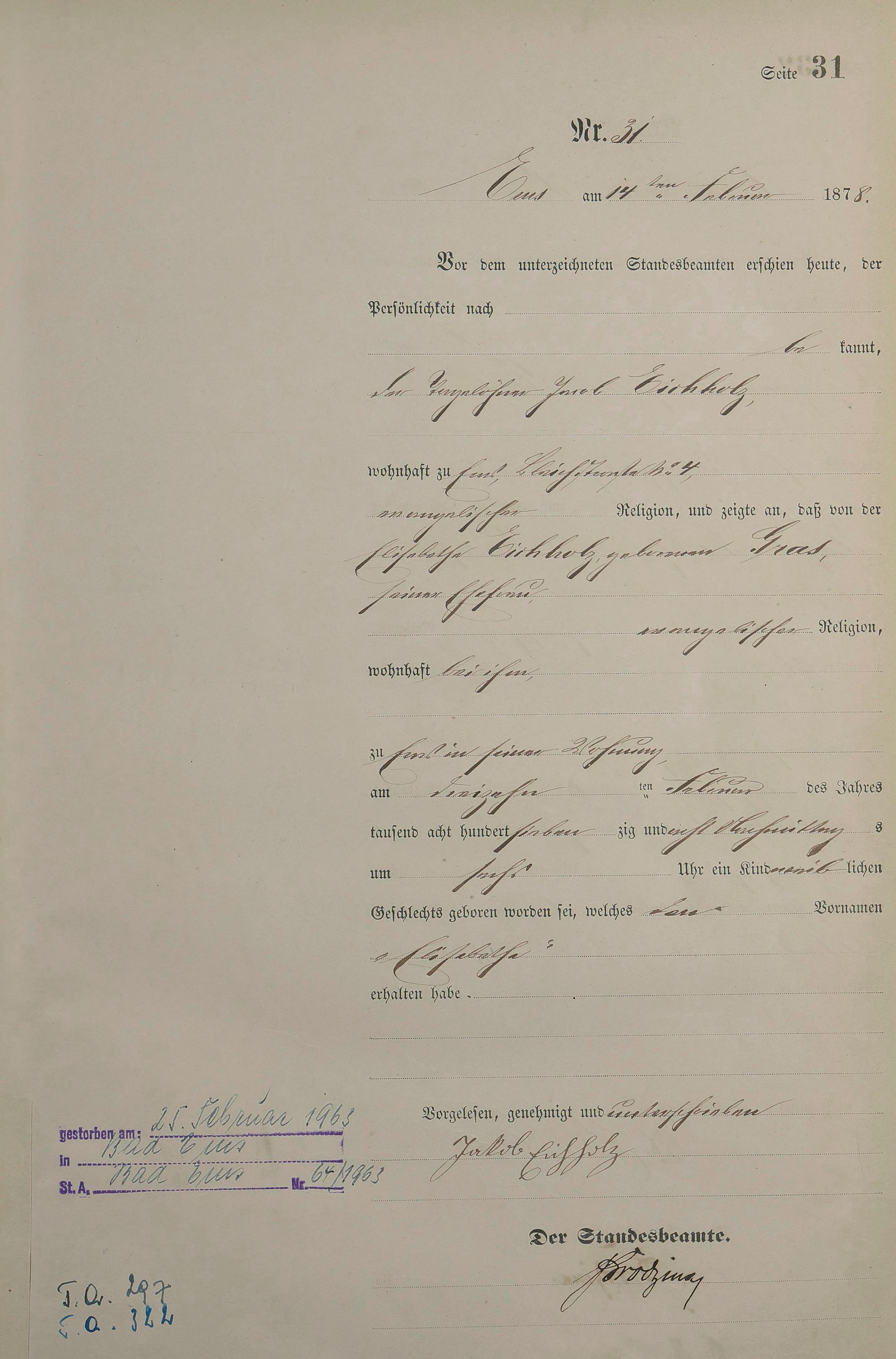 Geburtsregister 1878