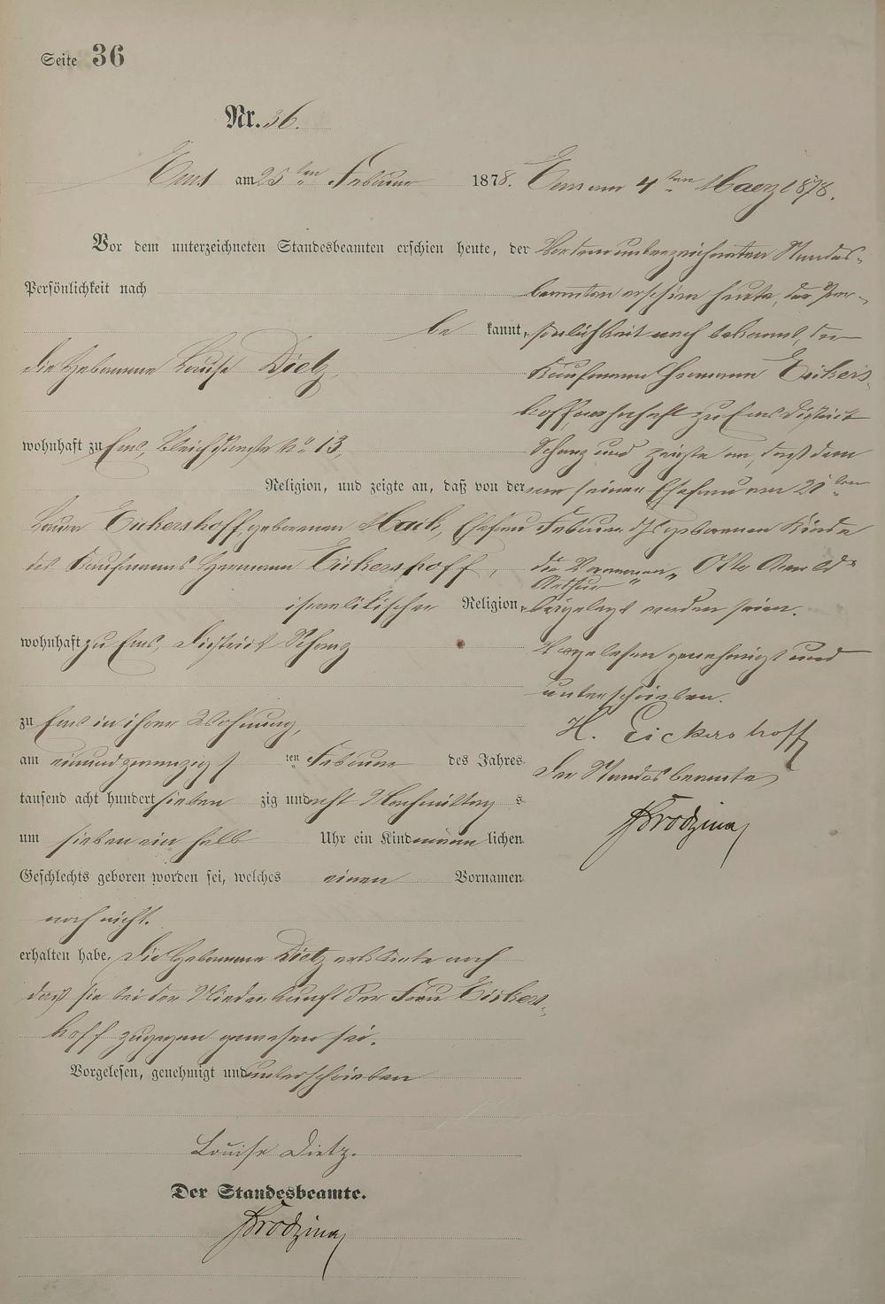 Geburtsregister 1878