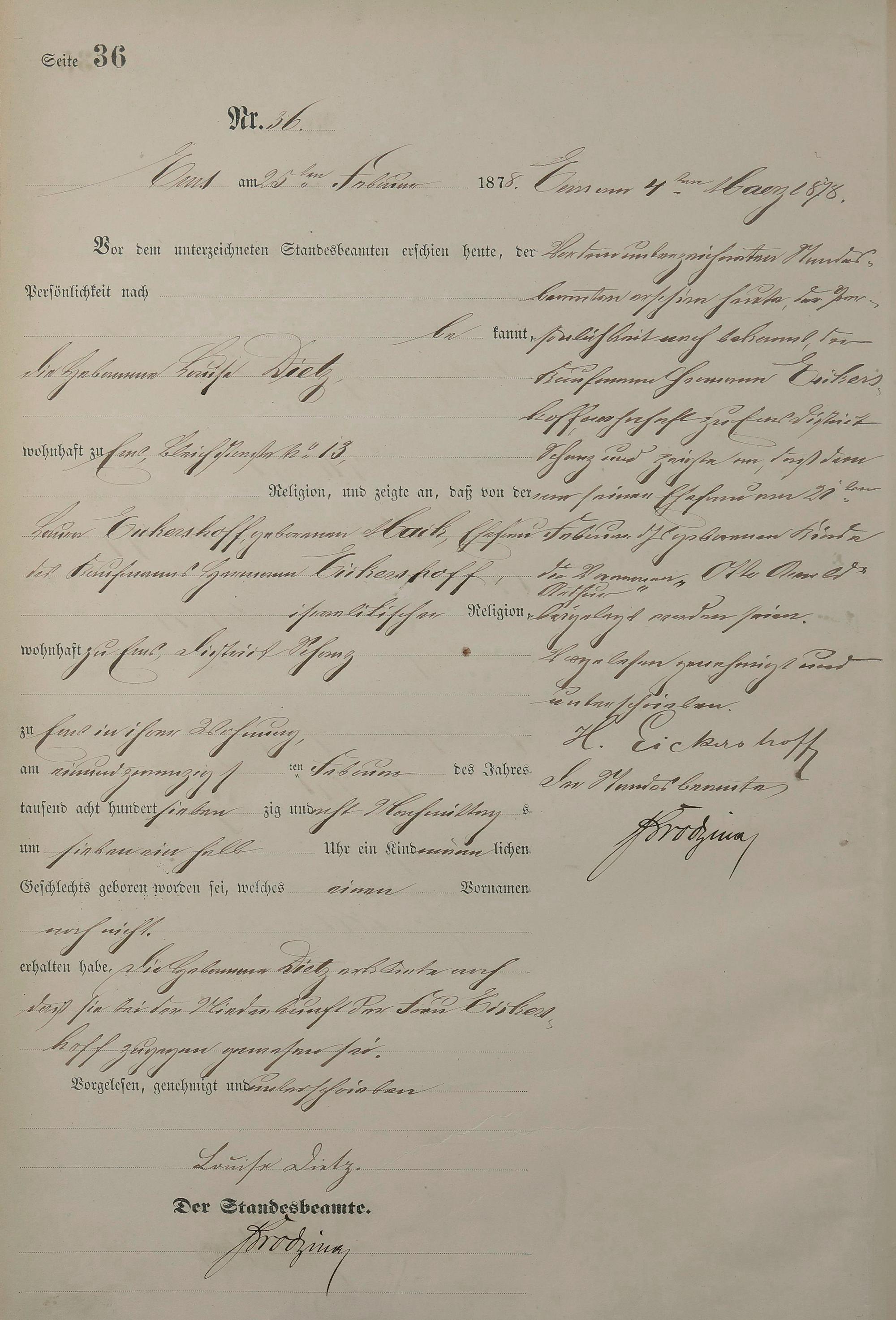 1254: Geburtsregister 1878