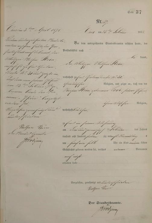 Geburtsregister 1878