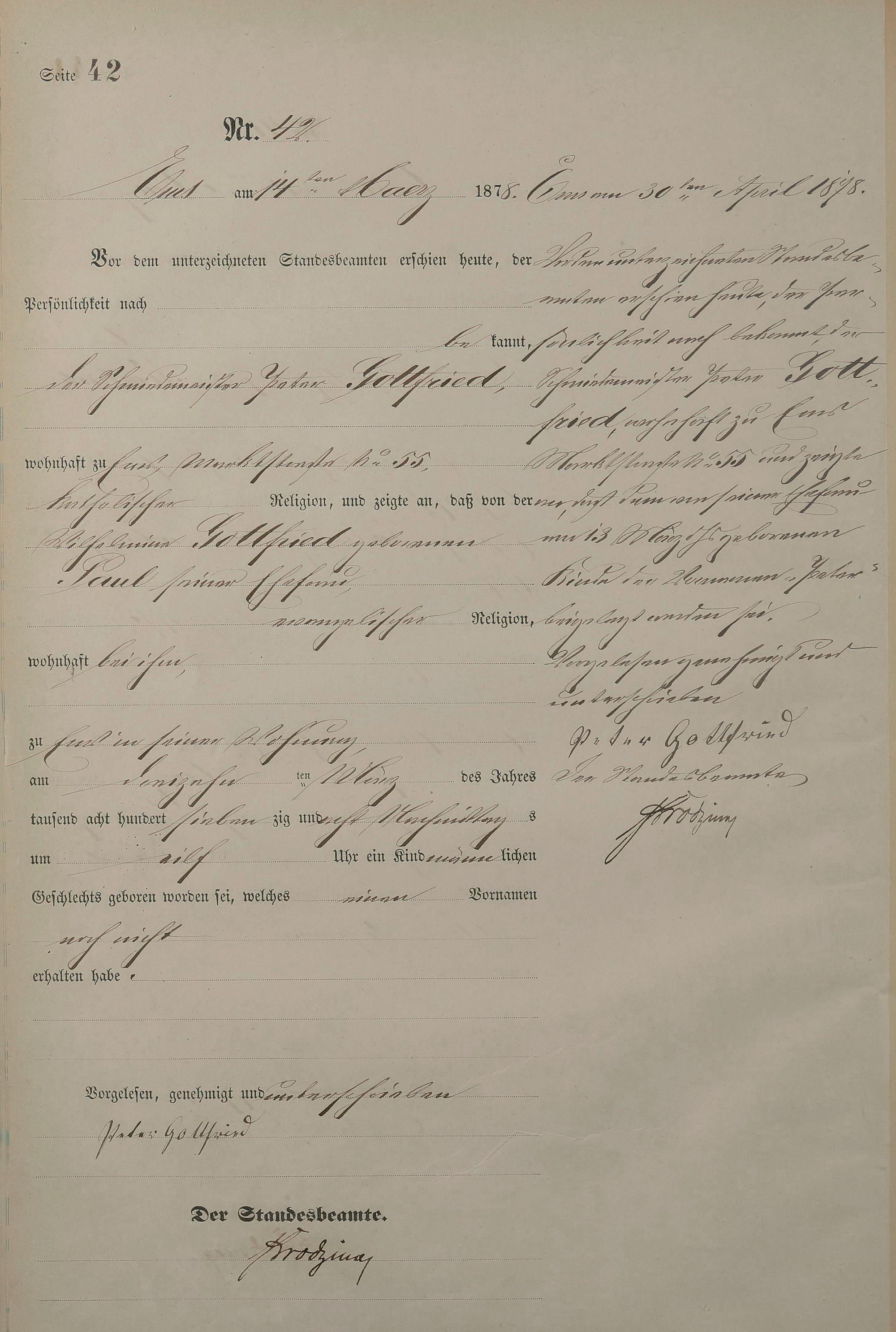Geburtsregister 1878
