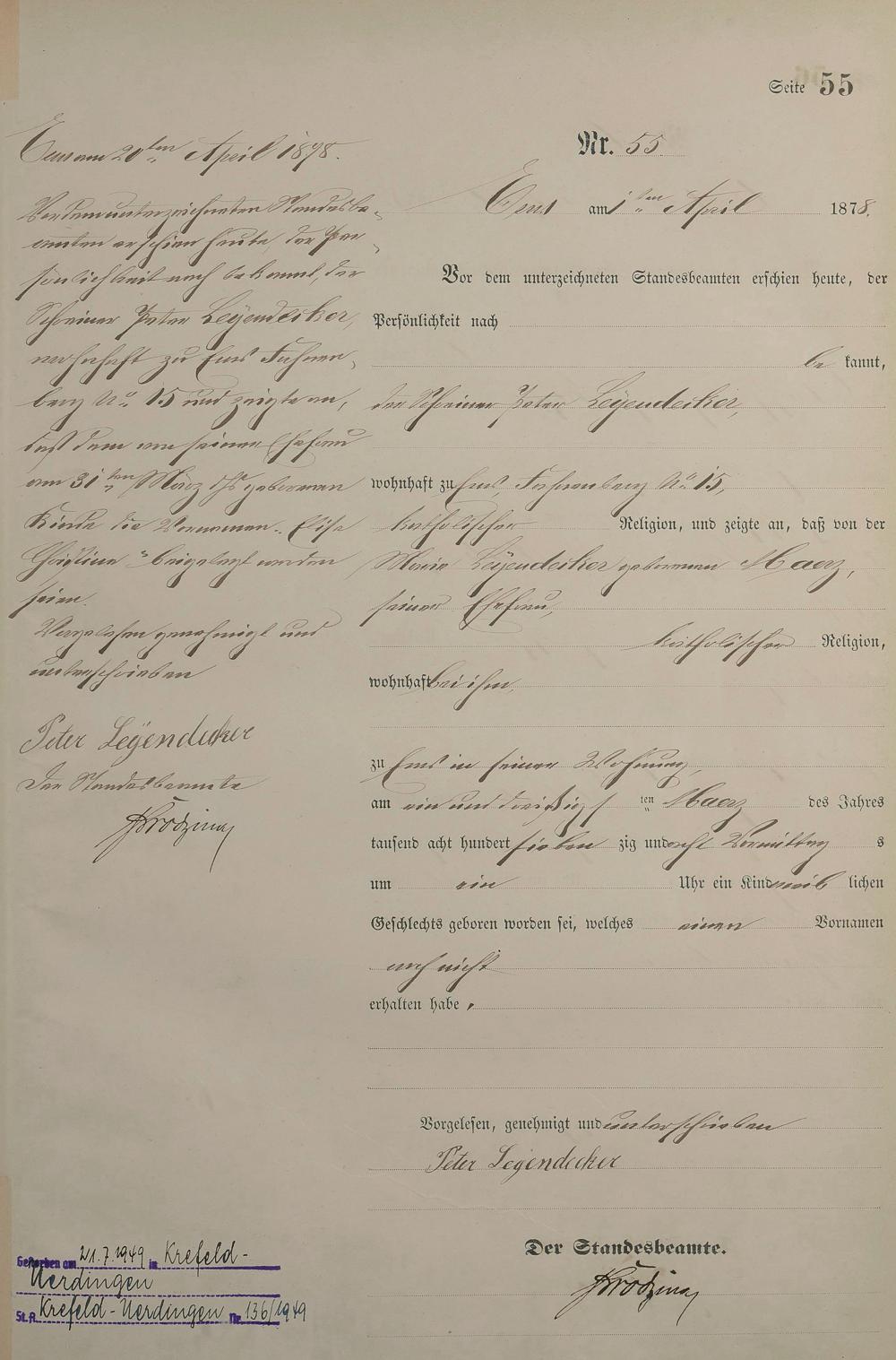 Geburtsregister 1878
