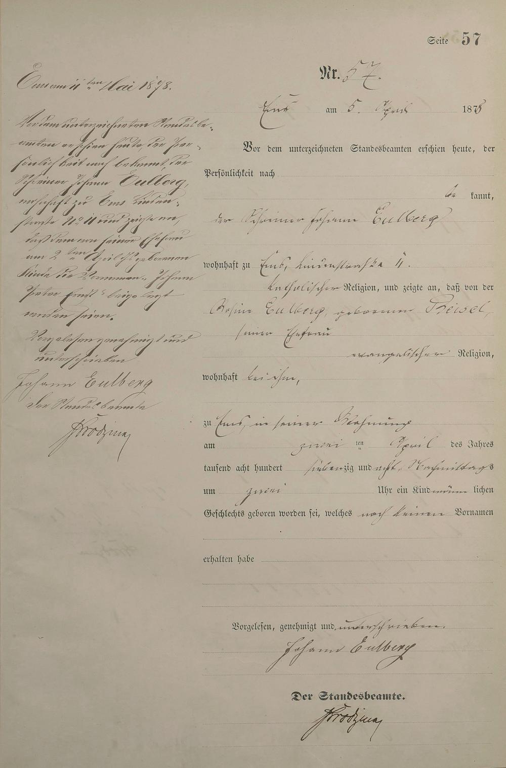Geburtsregister 1878