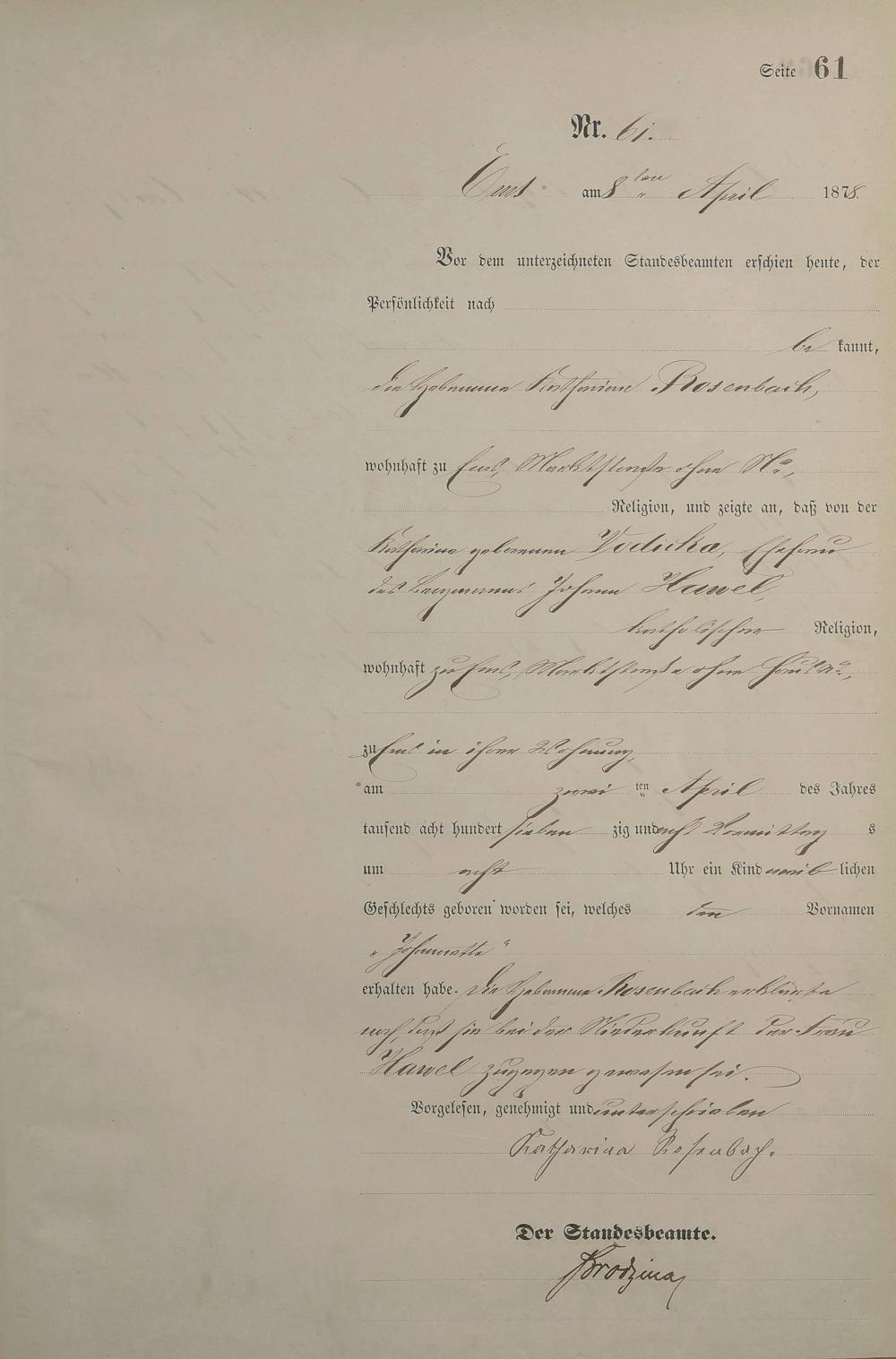Geburtsregister 1878