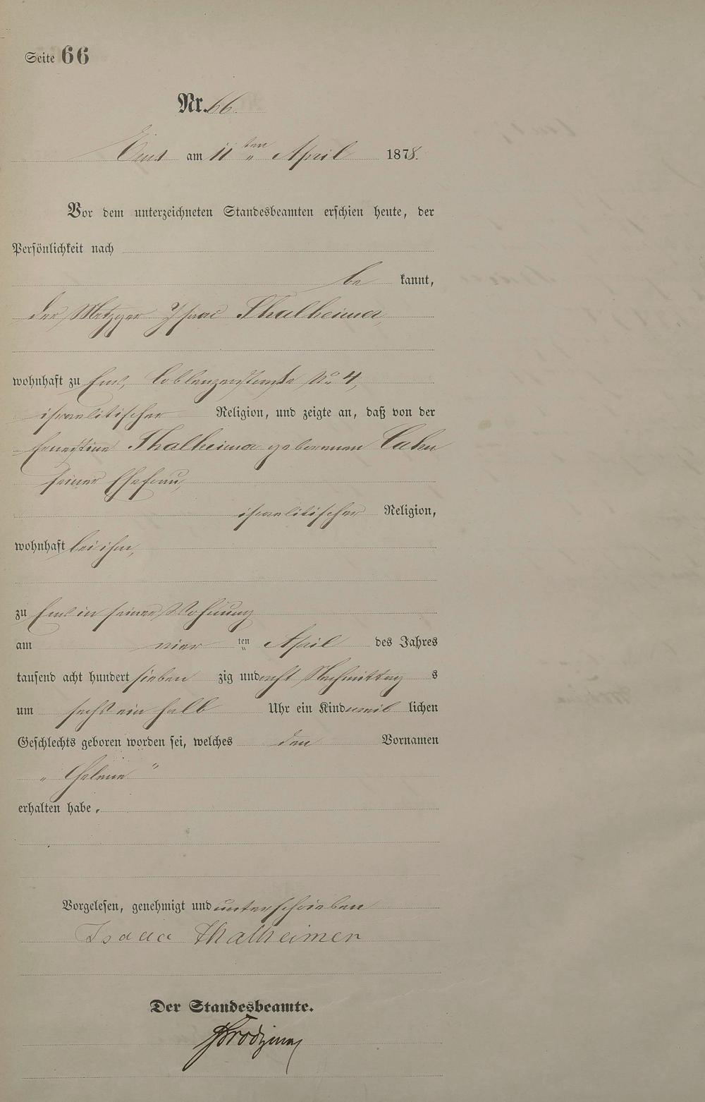 1254: Geburtsregister 1878