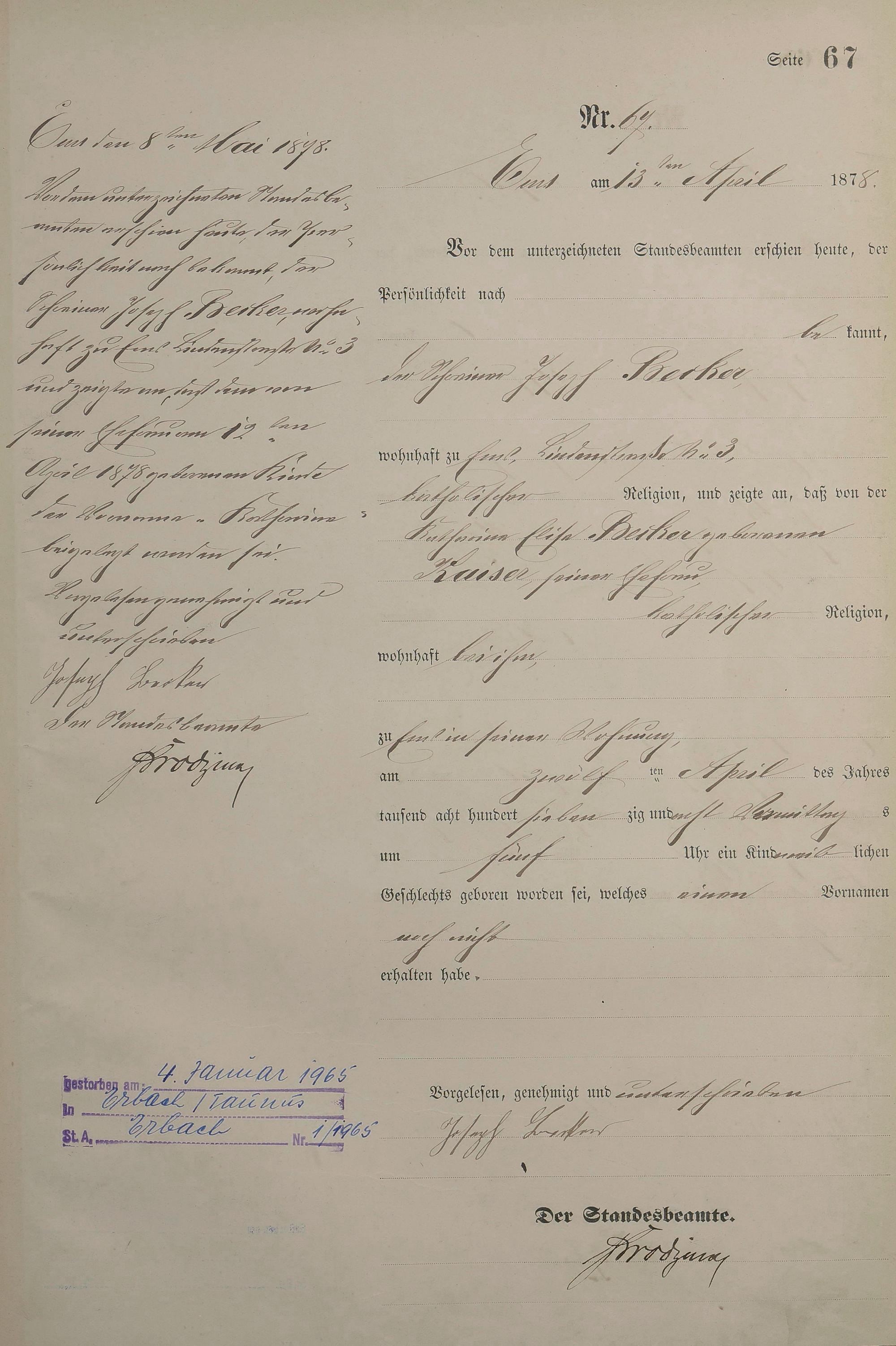 Geburtsregister 1878