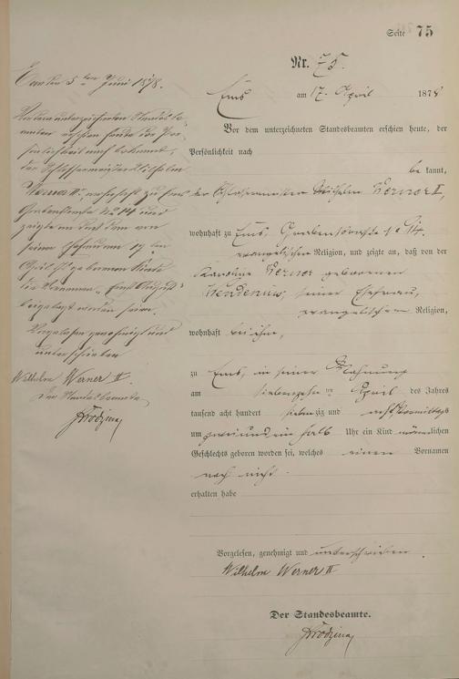 Geburtsregister 1878