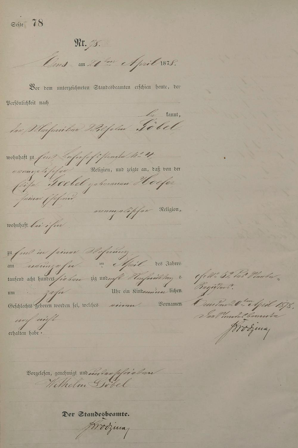 Geburtsregister 1878