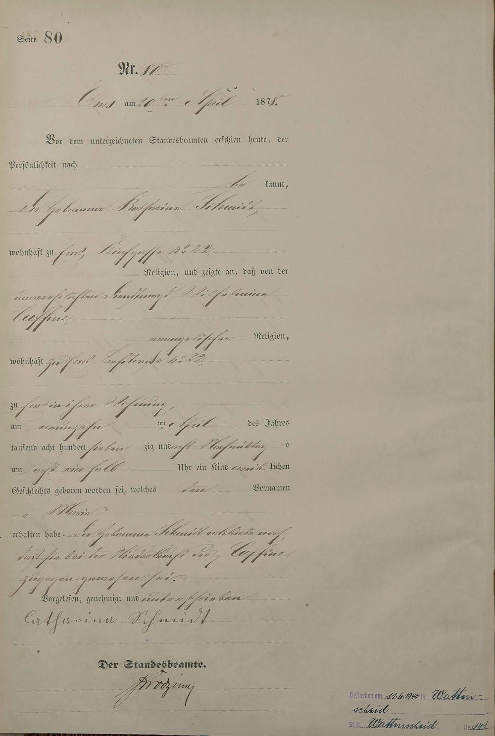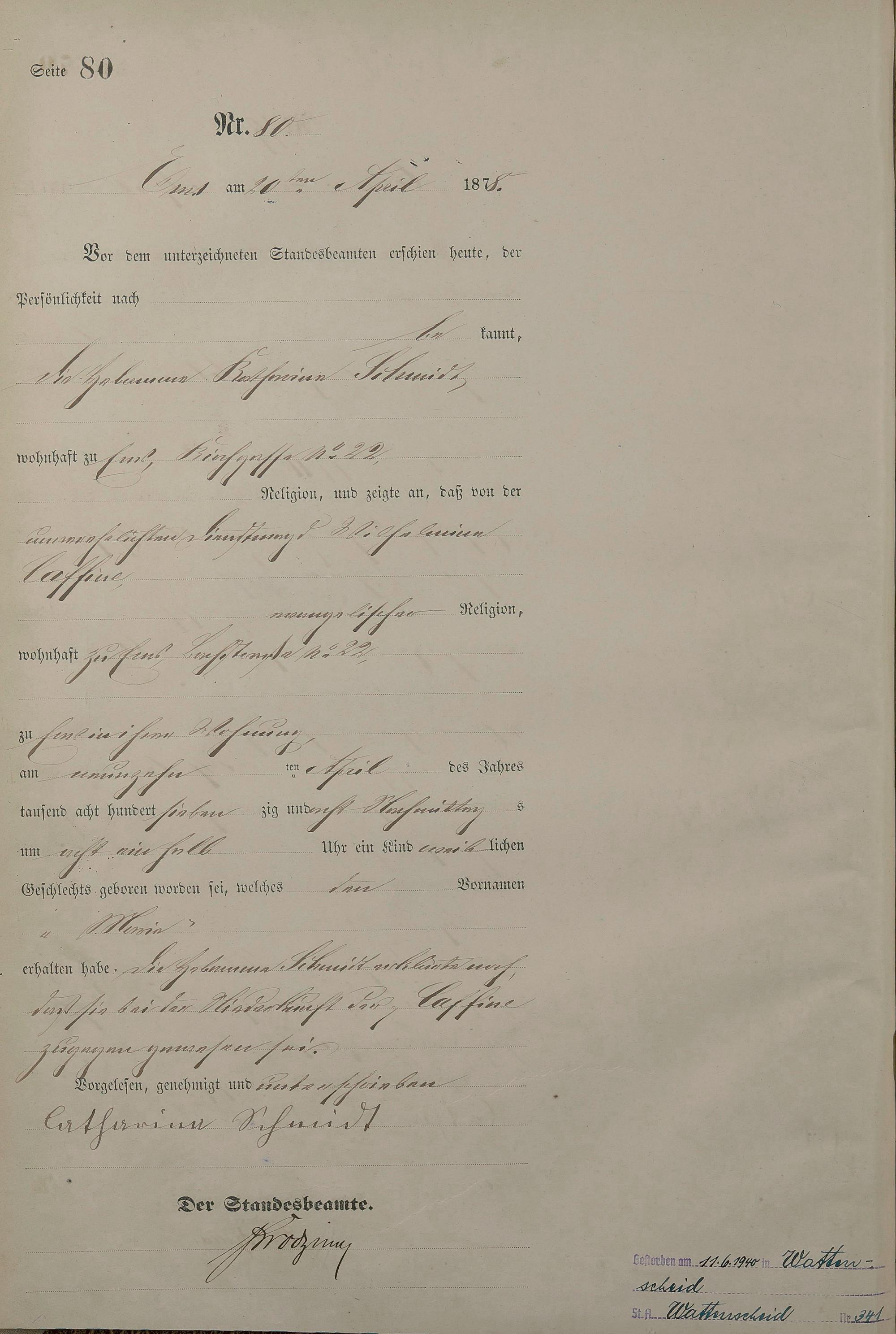 1254: Geburtsregister 1878