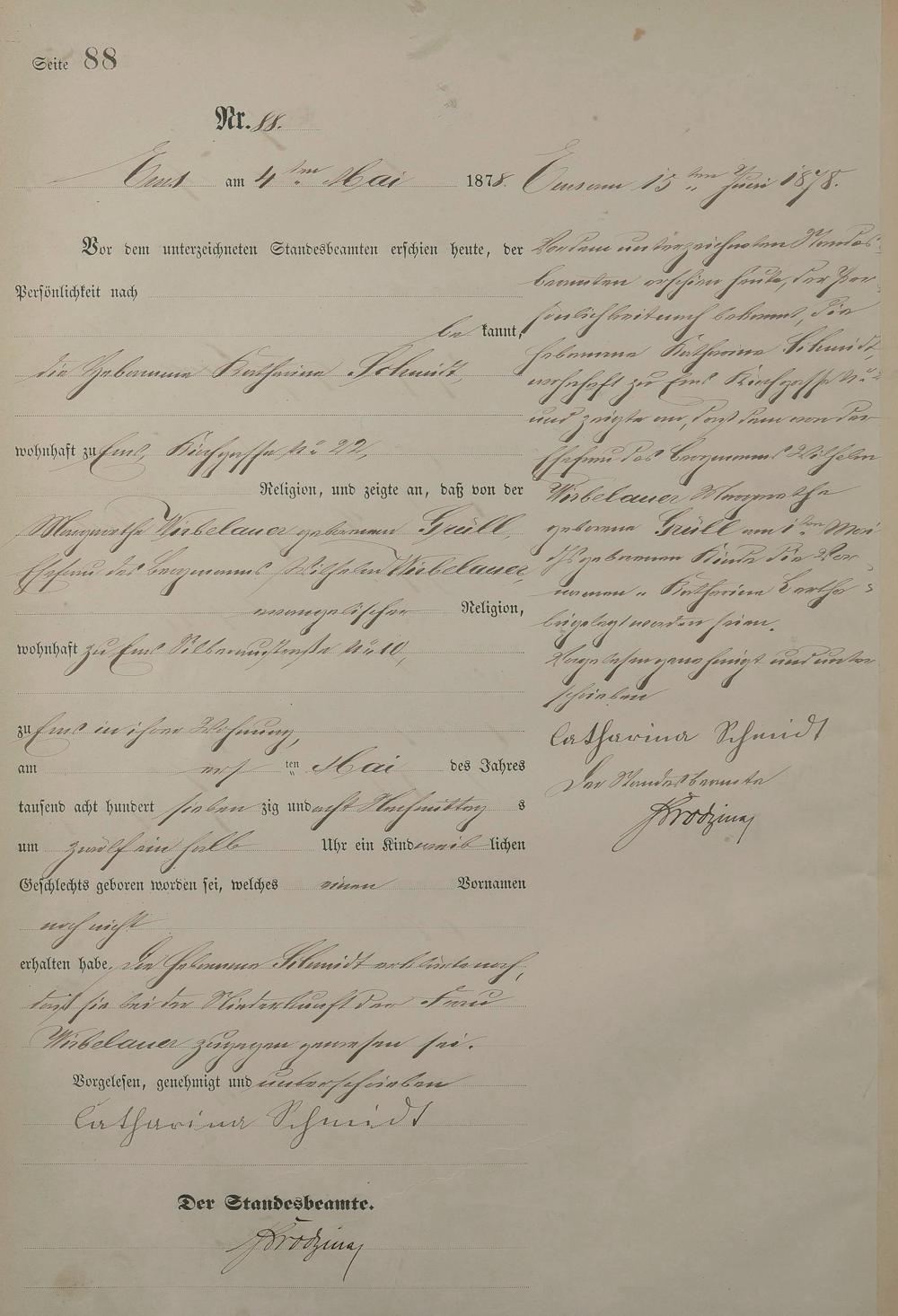 Geburtsregister 1878