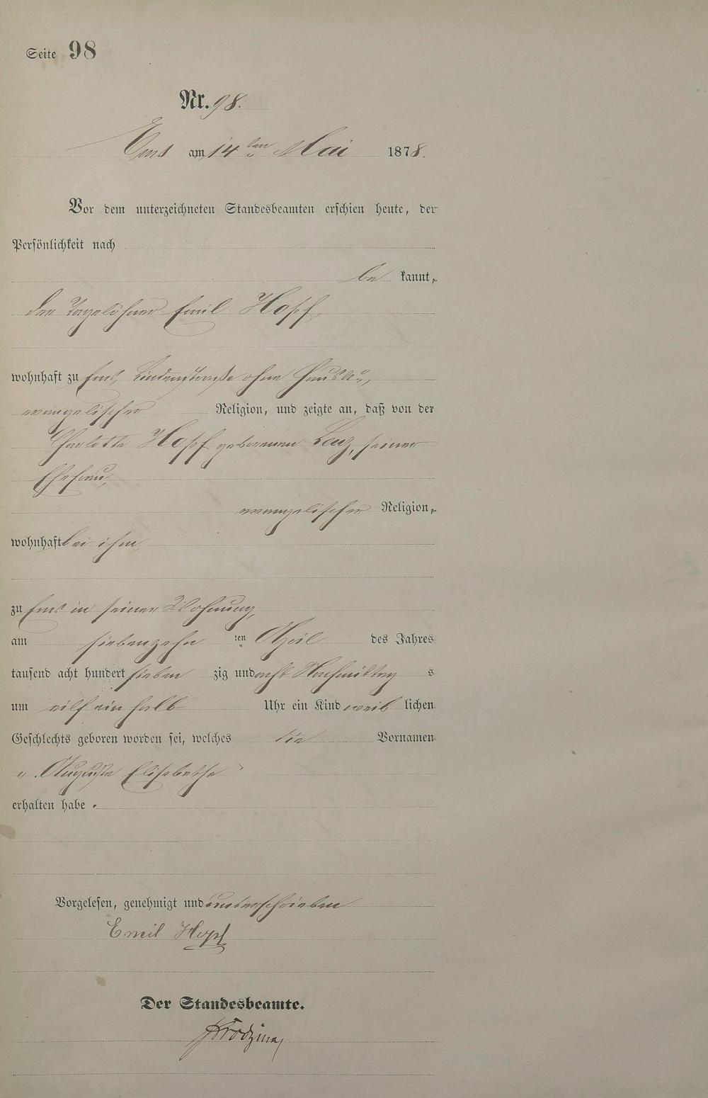 1254: Geburtsregister 1878