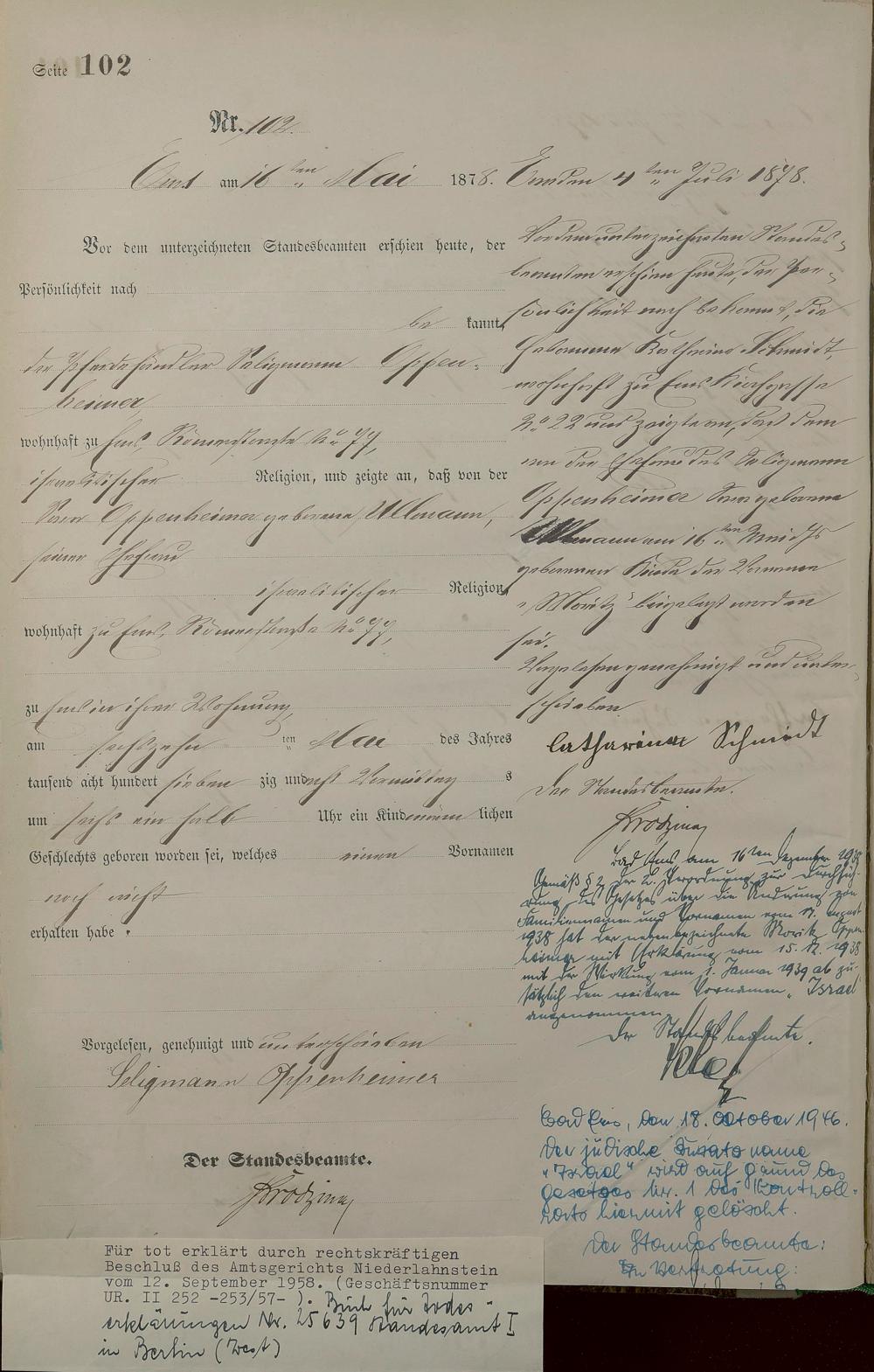1254: Geburtsregister 1878