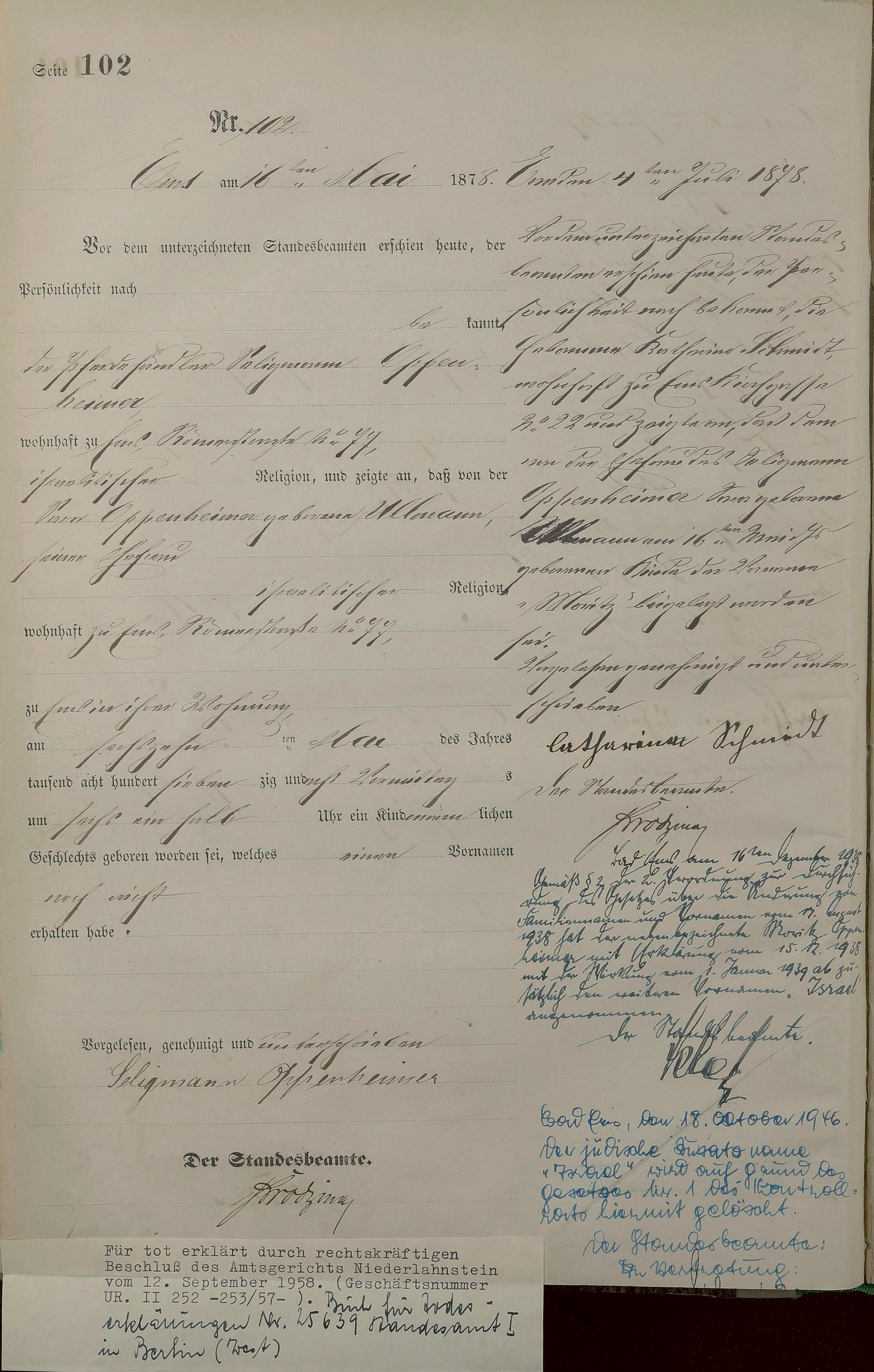 Geburtsregister 1878