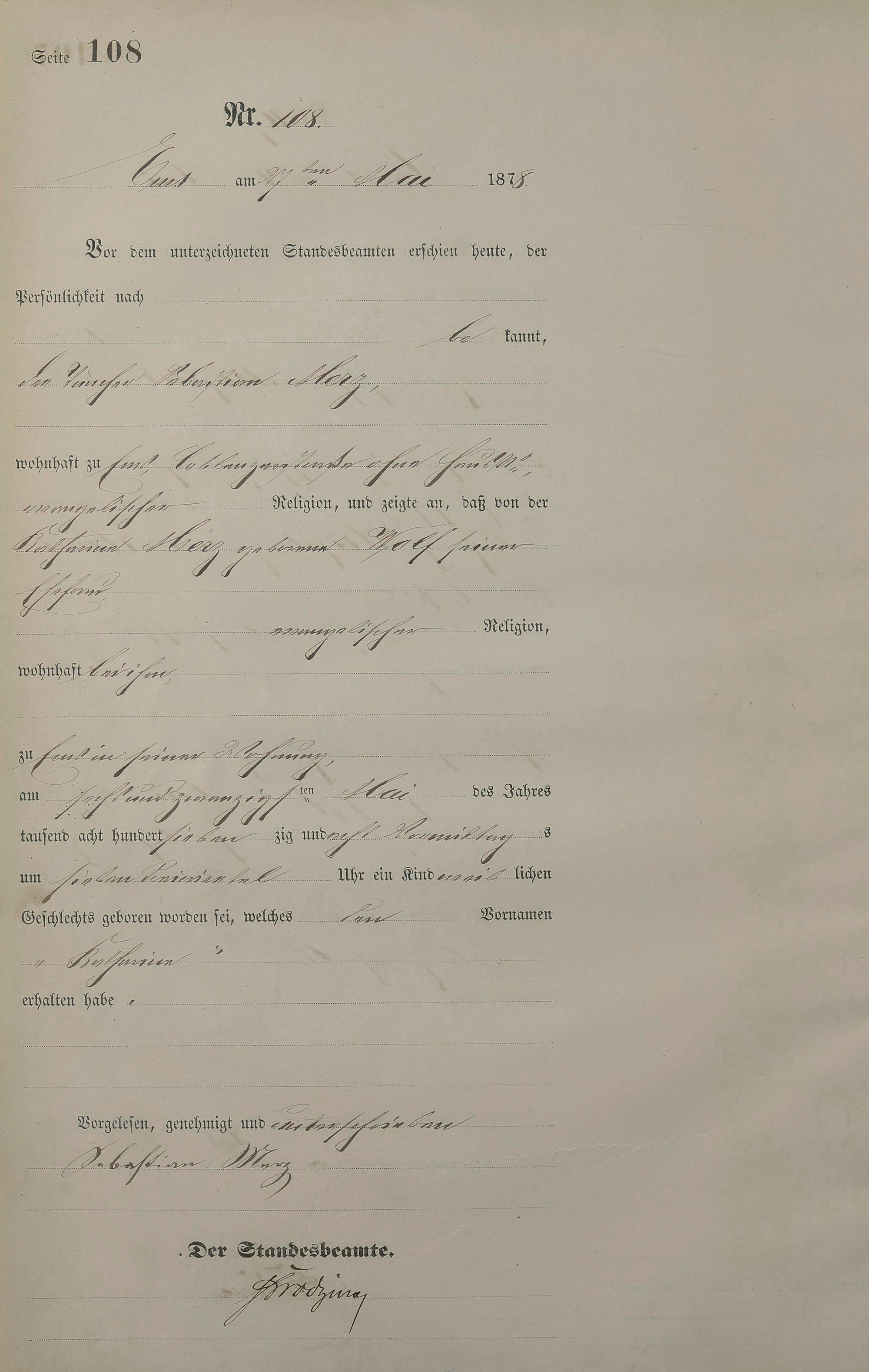 Geburtsregister 1878