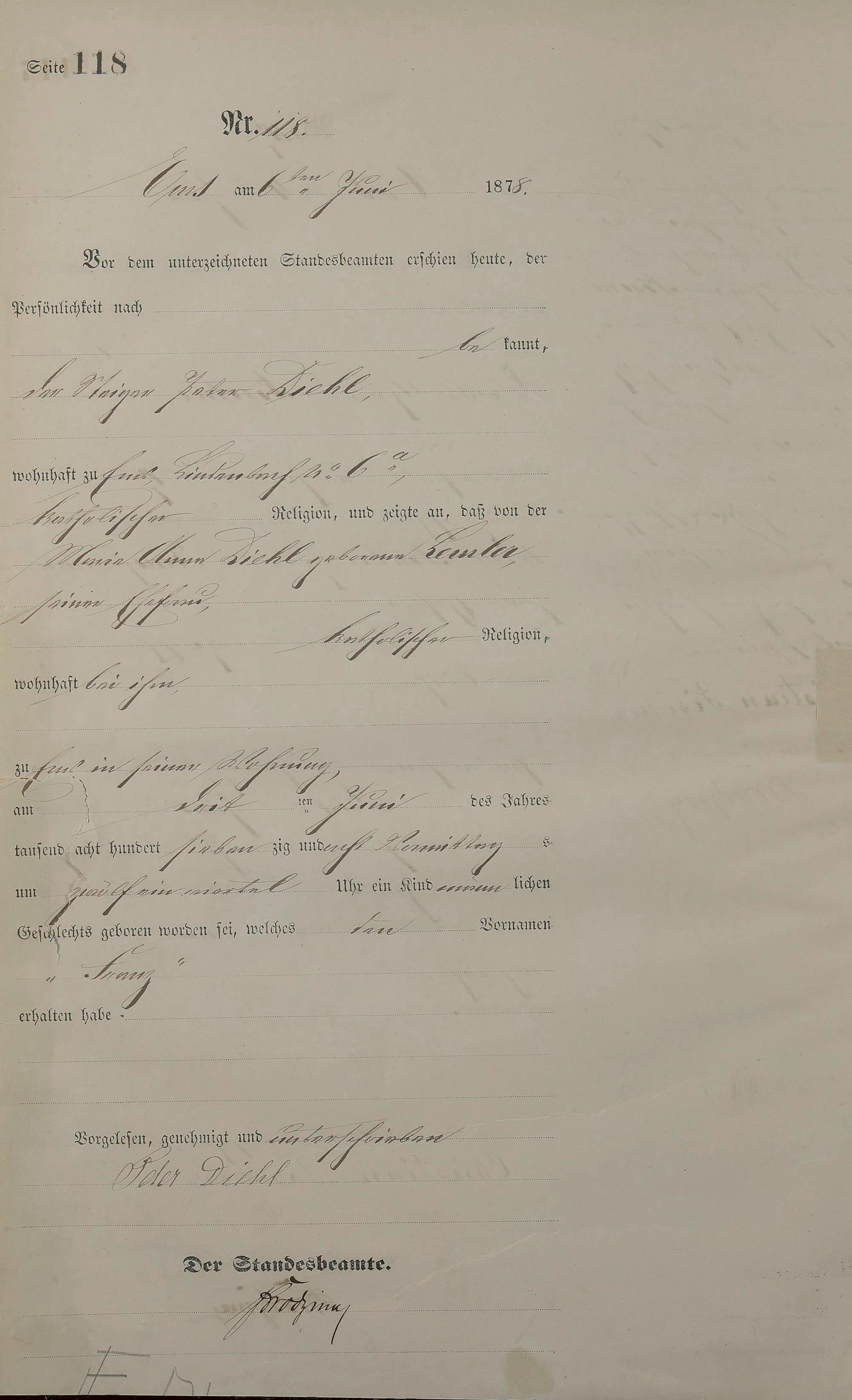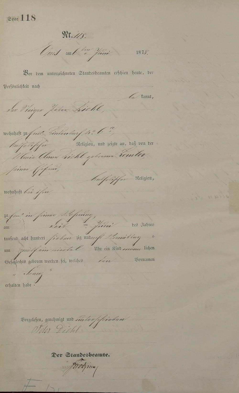 Geburtsregister 1878