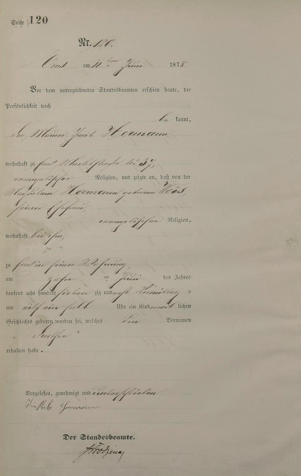 Geburtsregister 1878