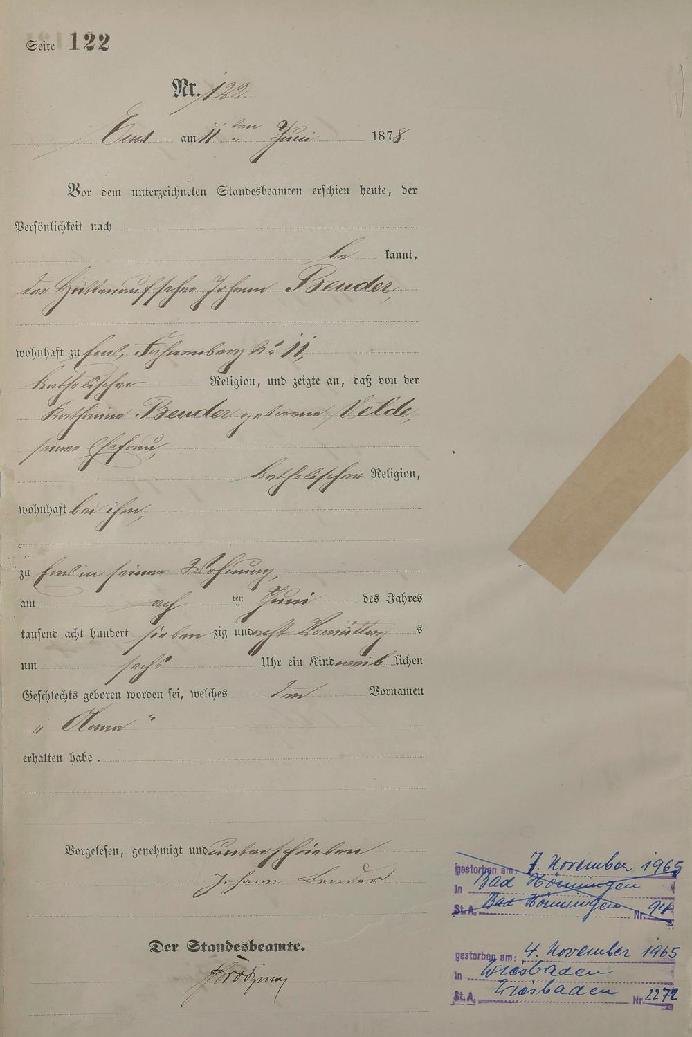 1254: Geburtsregister 1878