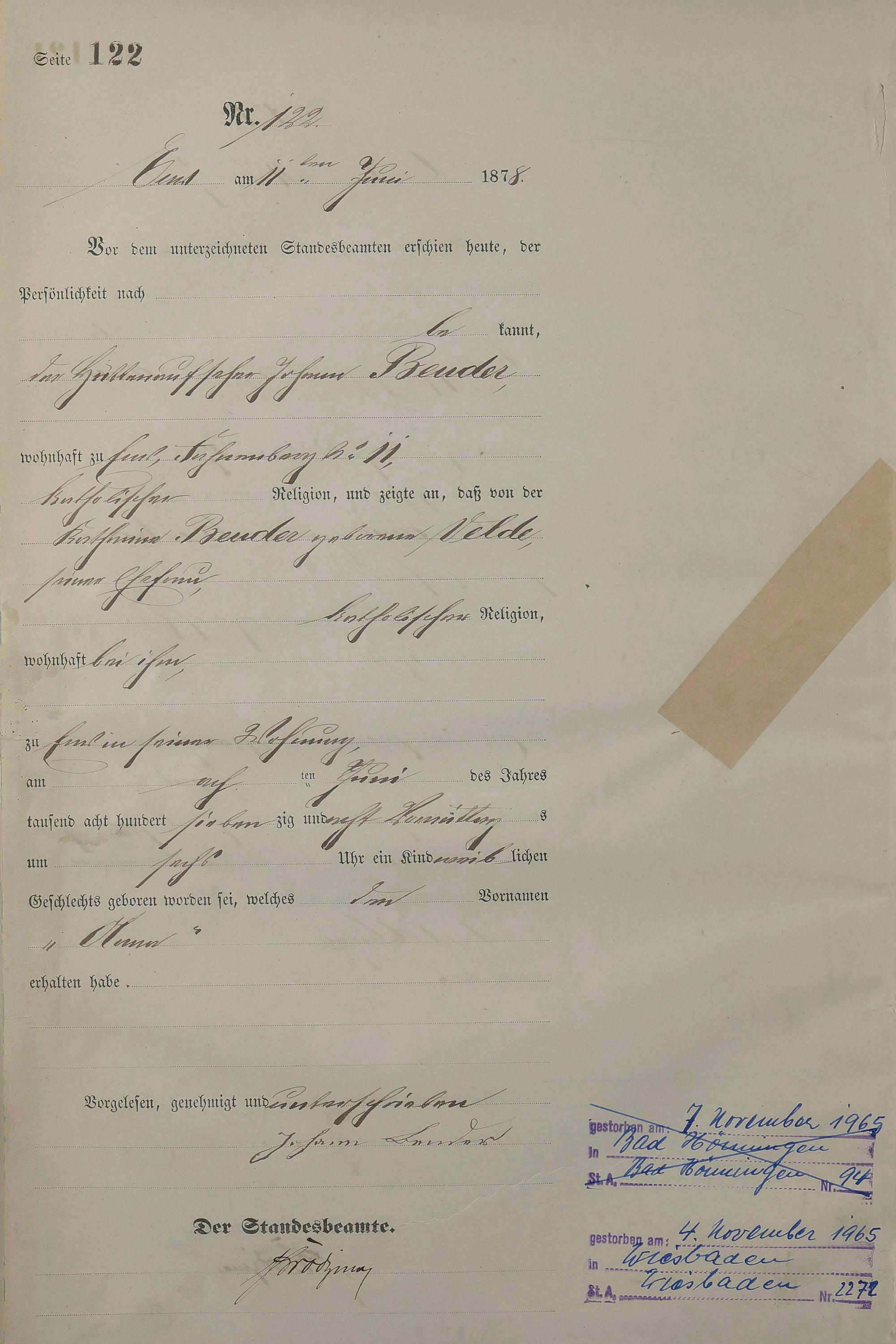 Geburtsregister 1878