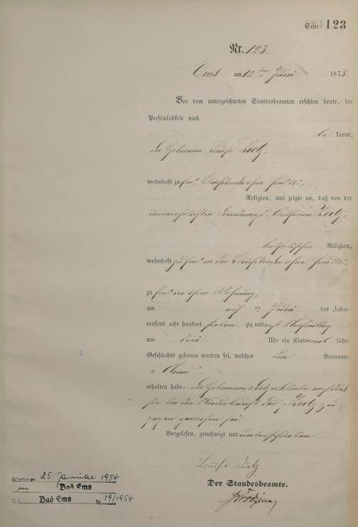 1254: Geburtsregister 1878