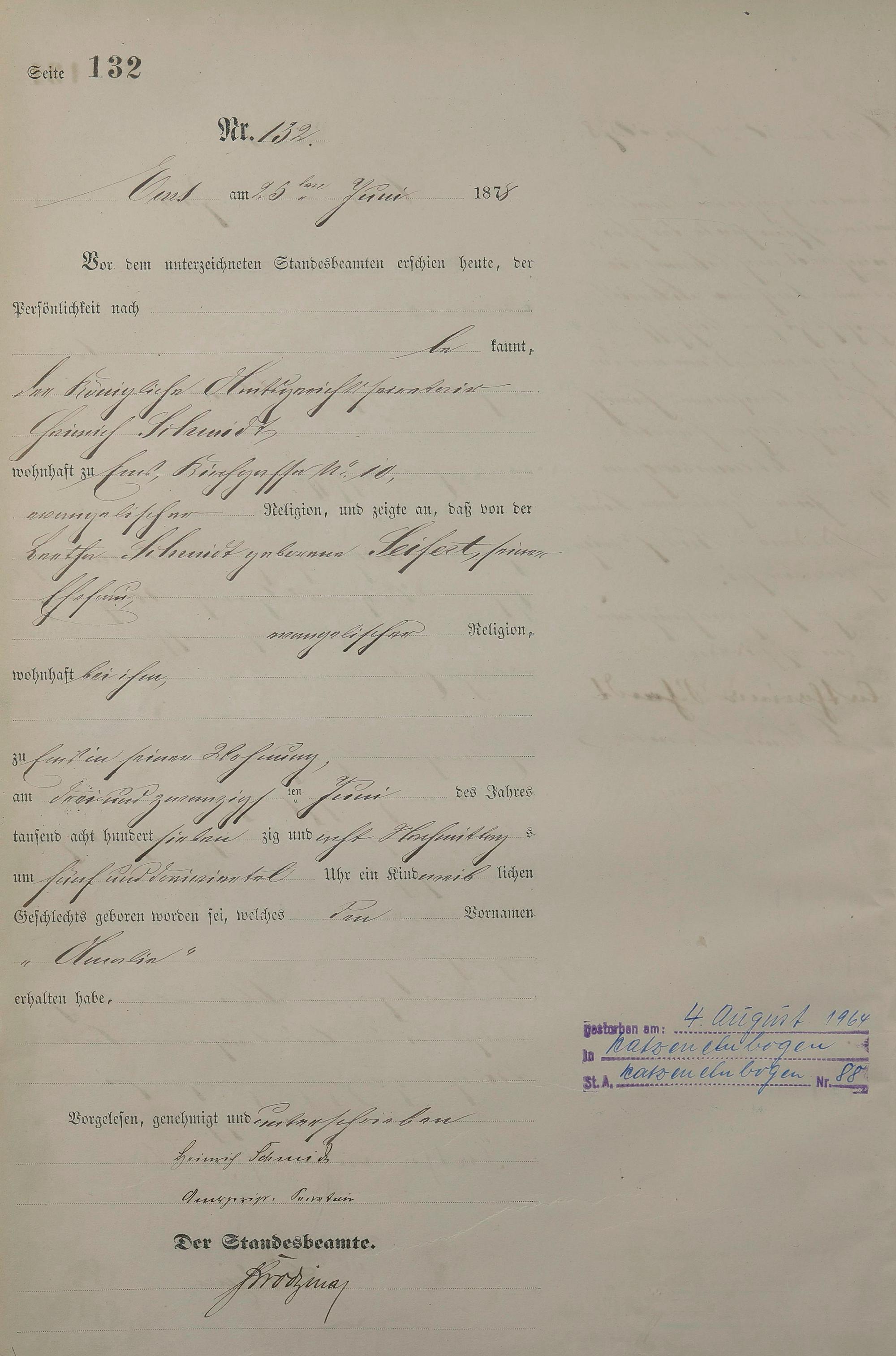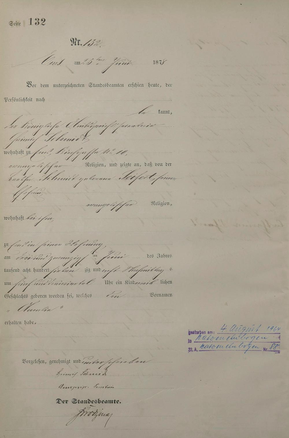 1254: Geburtsregister 1878