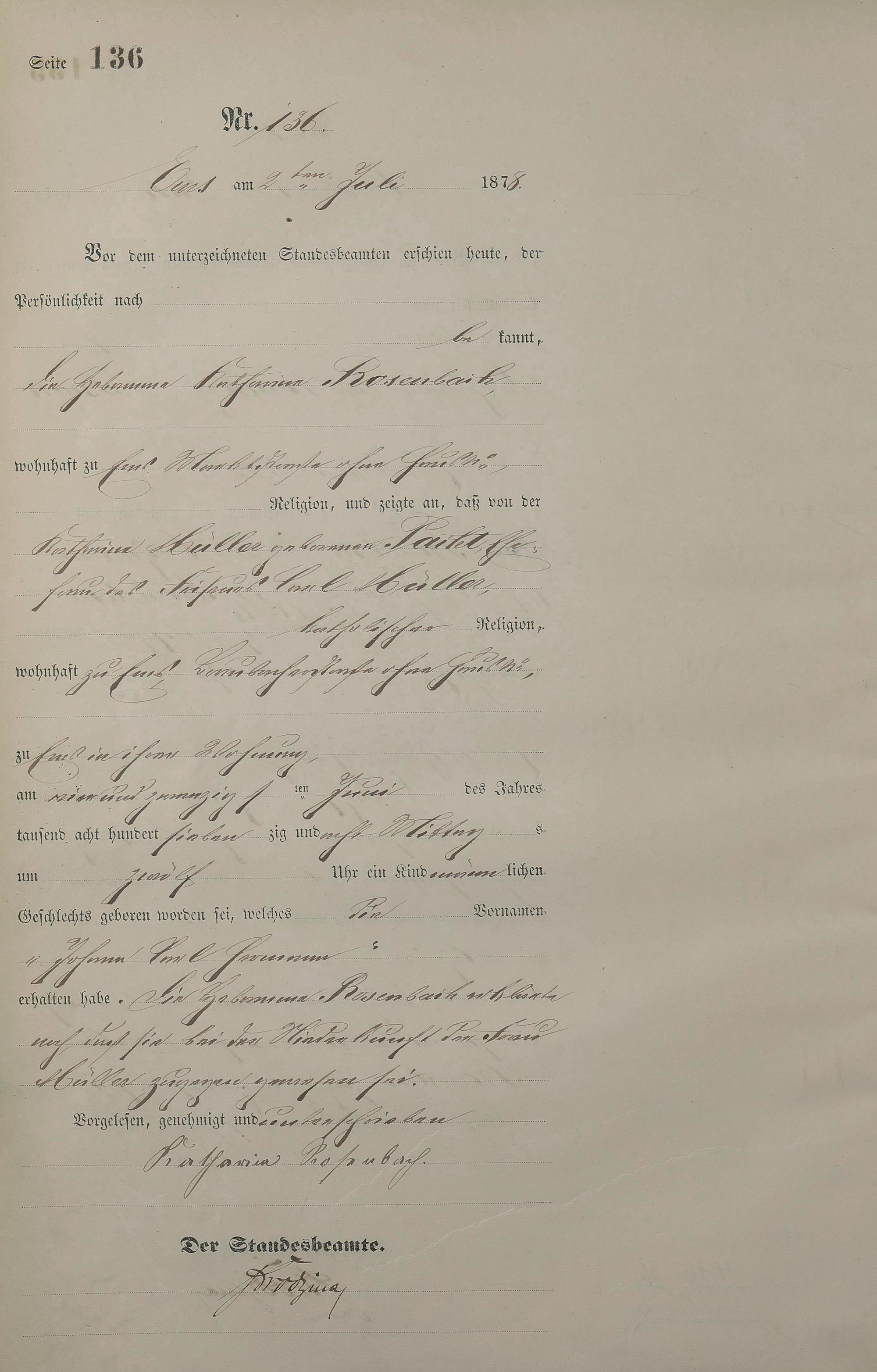 1254: Geburtsregister 1878