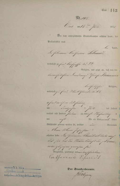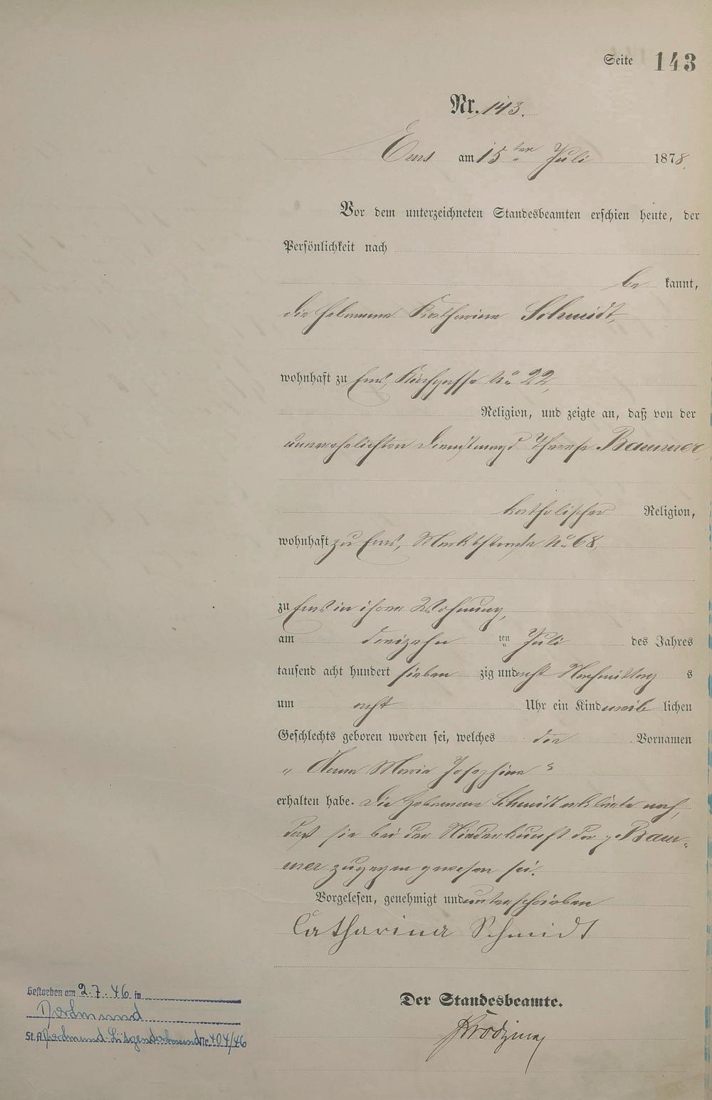 Geburtsregister 1878
