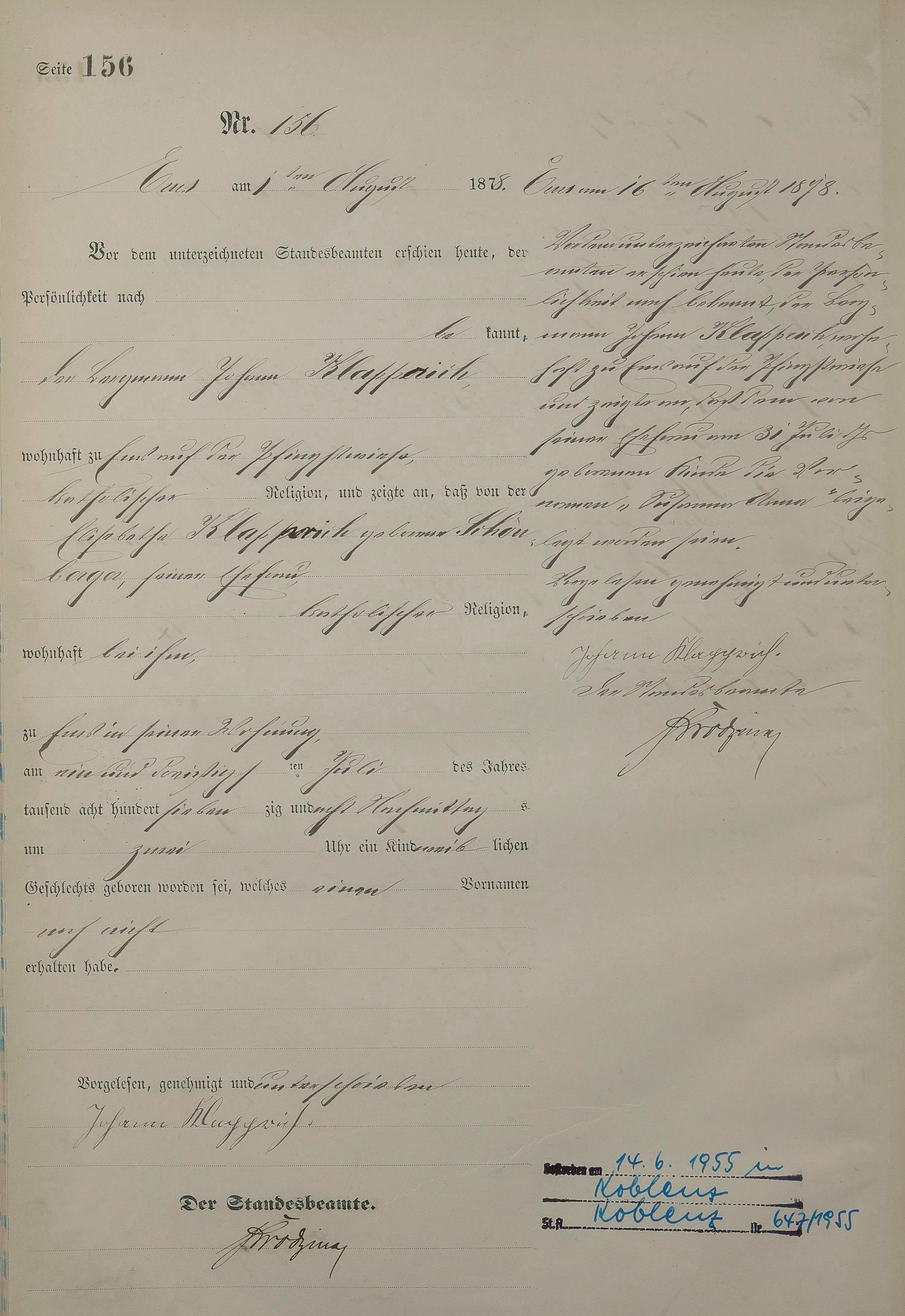 1254: Geburtsregister 1878