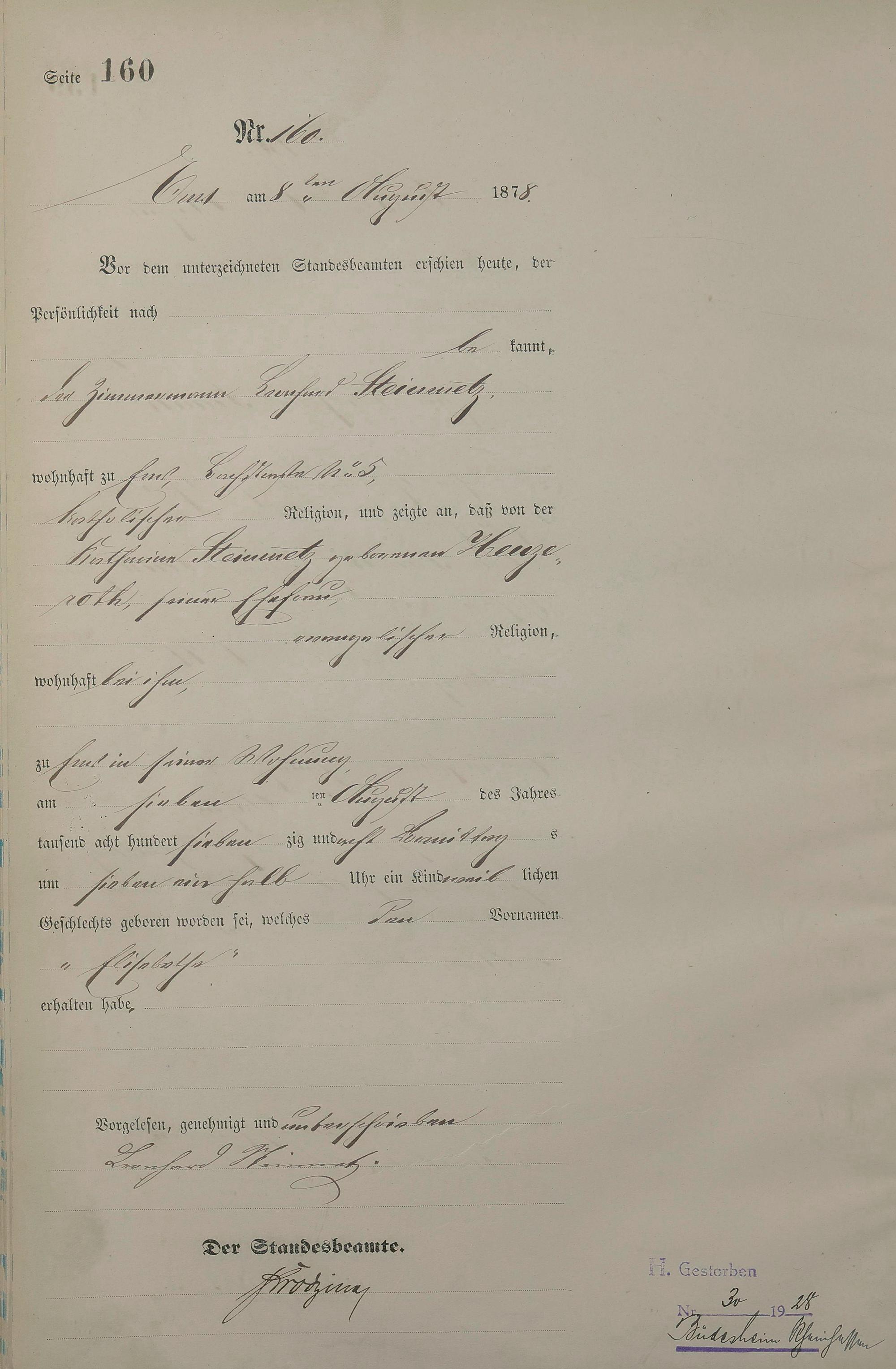 1254: Geburtsregister 1878