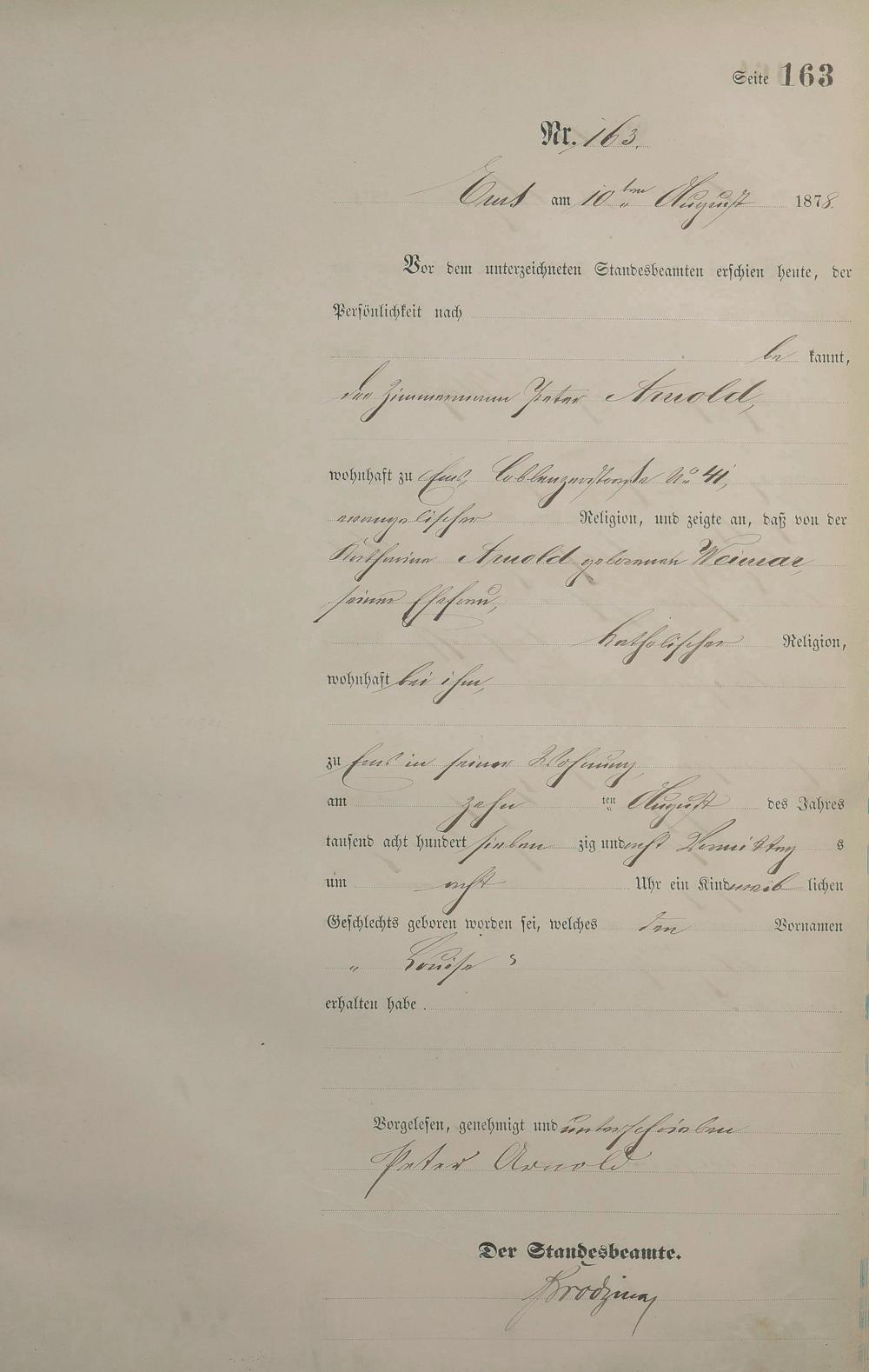 1254: Geburtsregister 1878