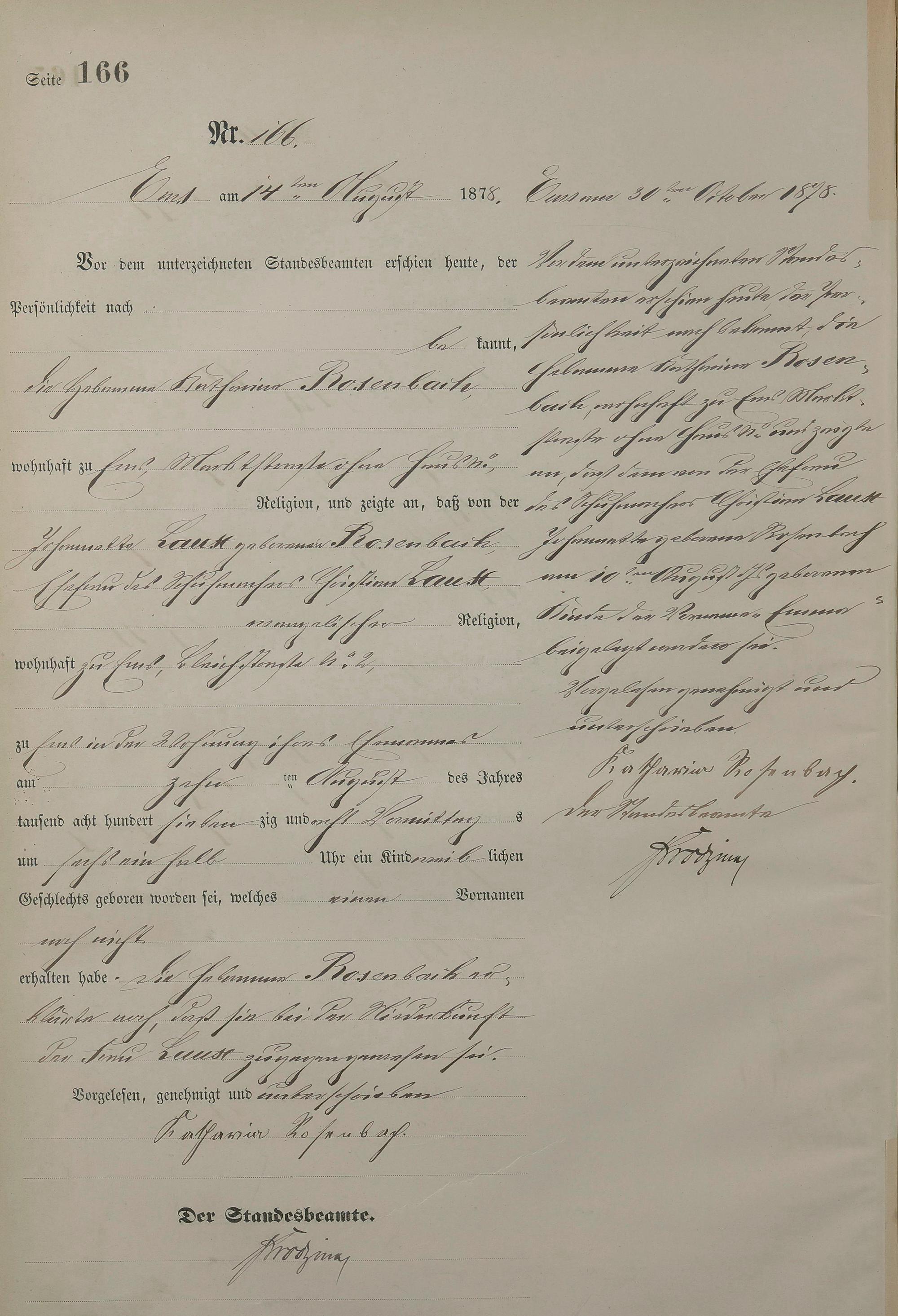 1254: Geburtsregister 1878
