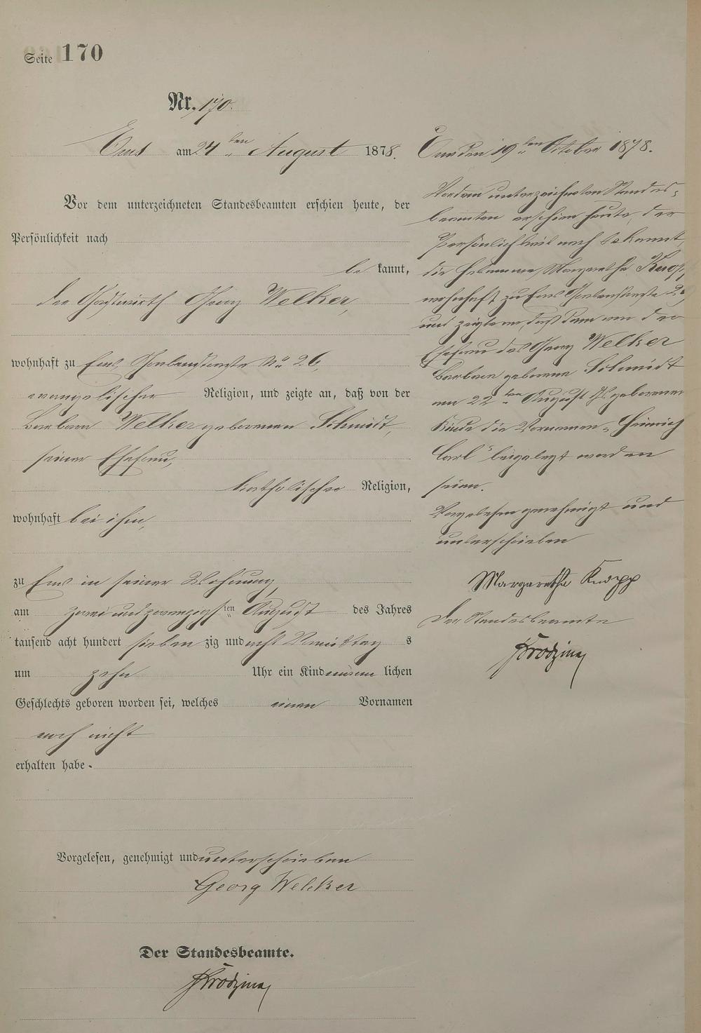 Geburtsregister 1878