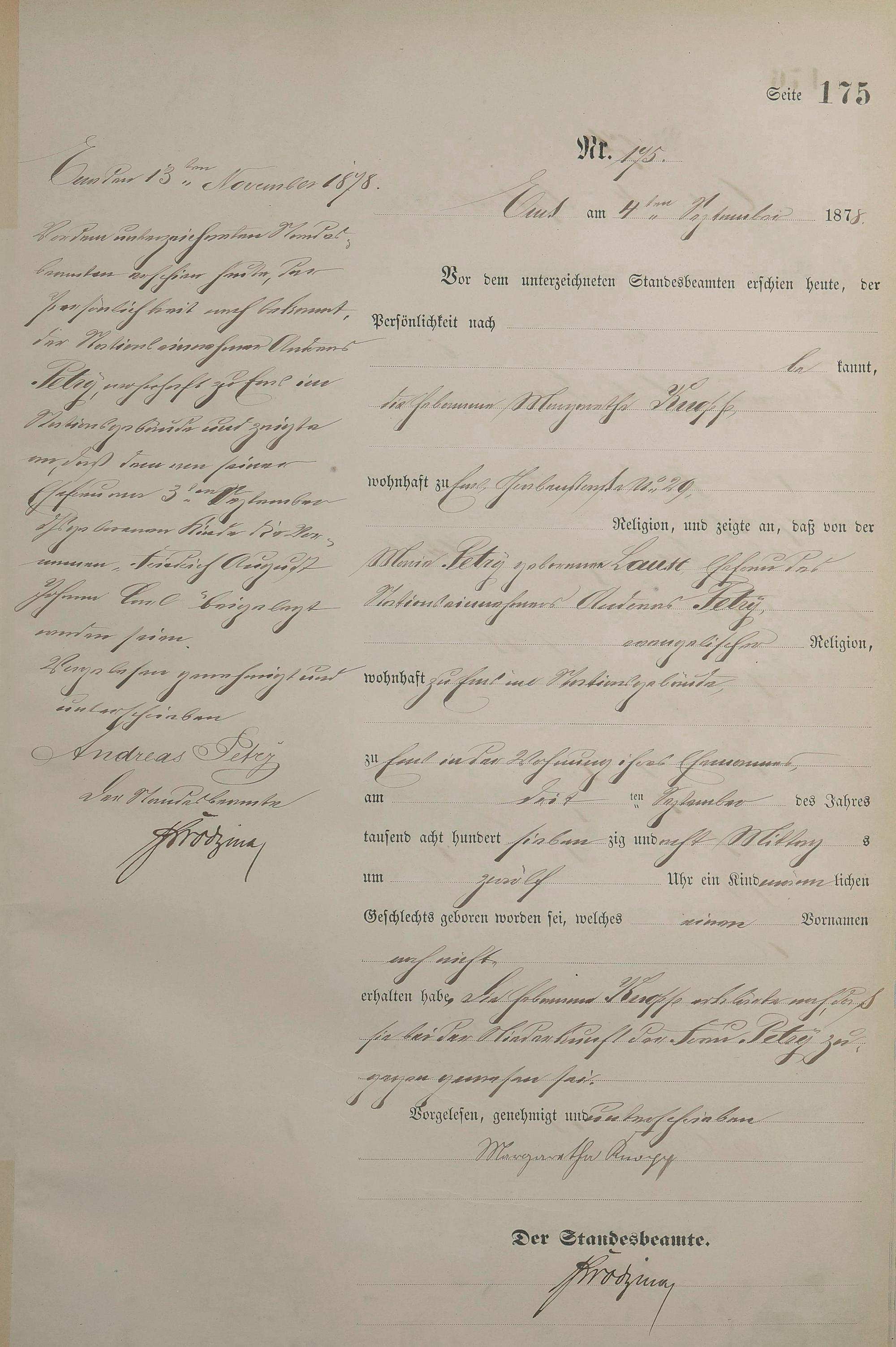 1254: Geburtsregister 1878