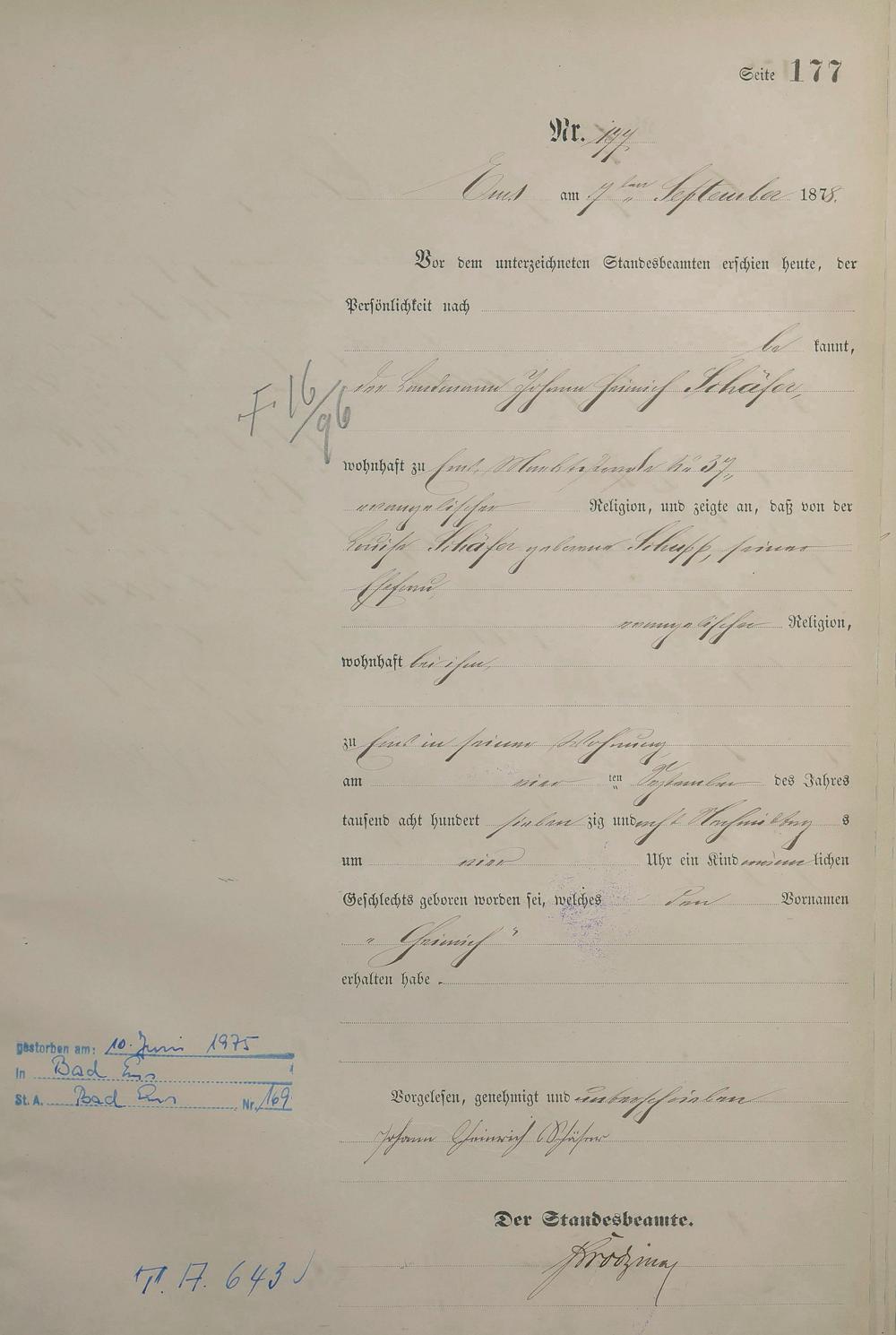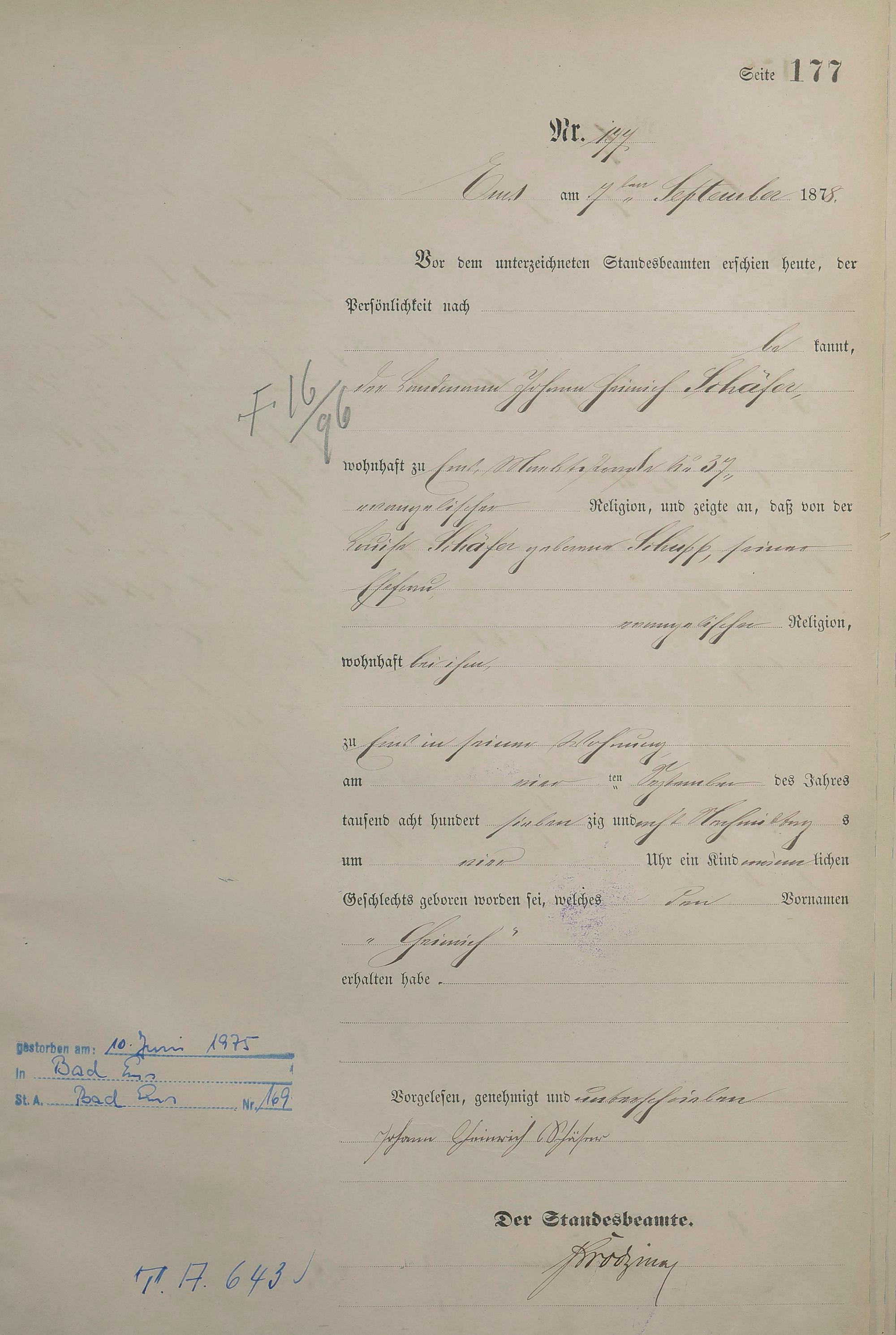 Geburtsregister 1878