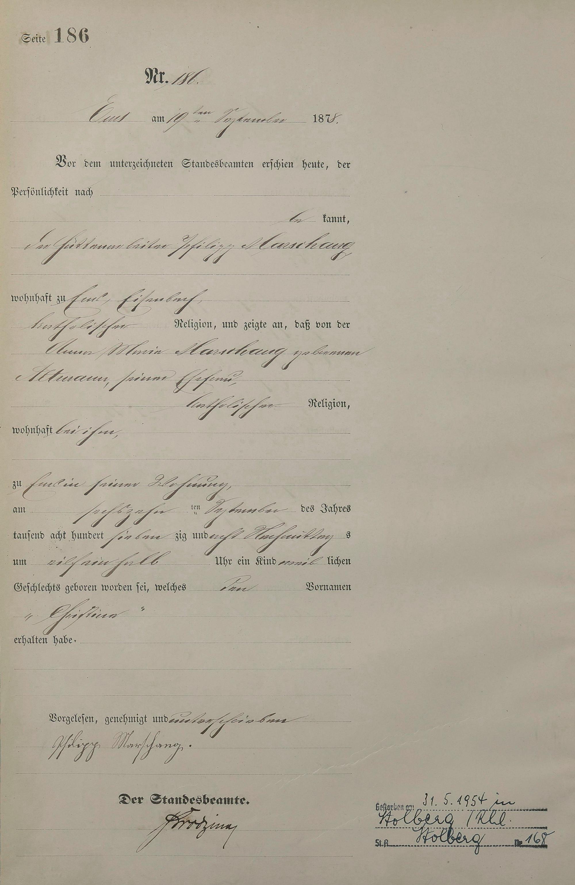 1254: Geburtsregister 1878