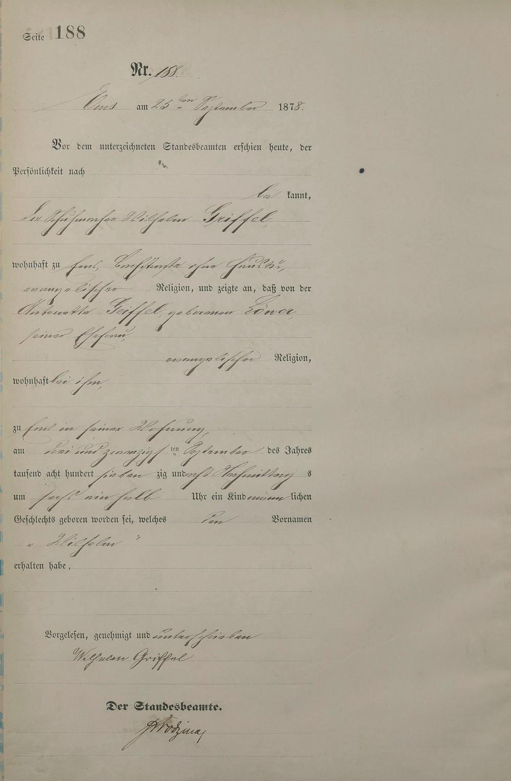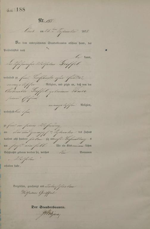 Geburtsregister 1878