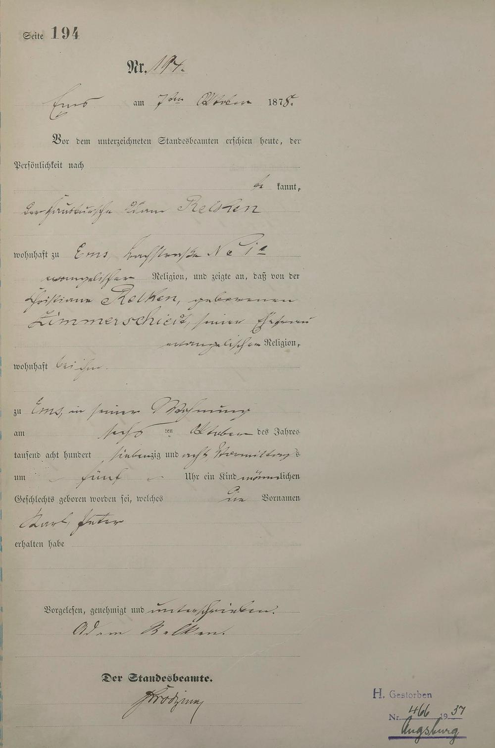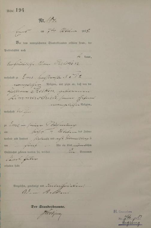 1254: Geburtsregister 1878
