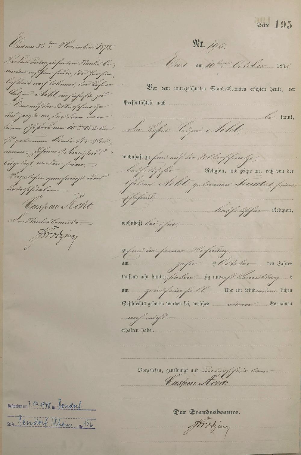 1254: Geburtsregister 1878