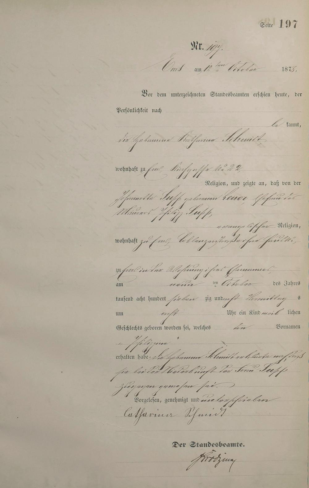 1254: Geburtsregister 1878