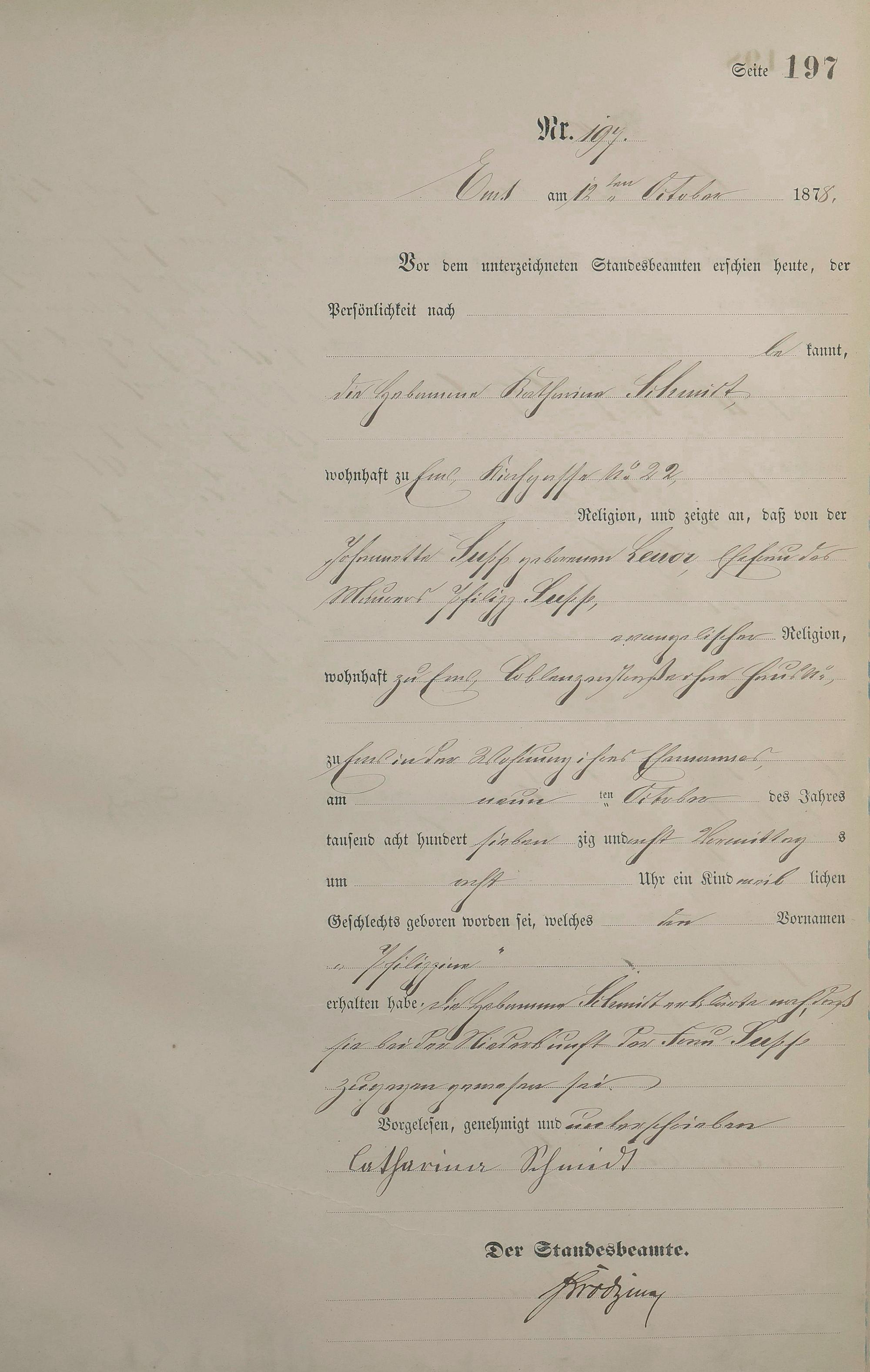 Geburtsregister 1878