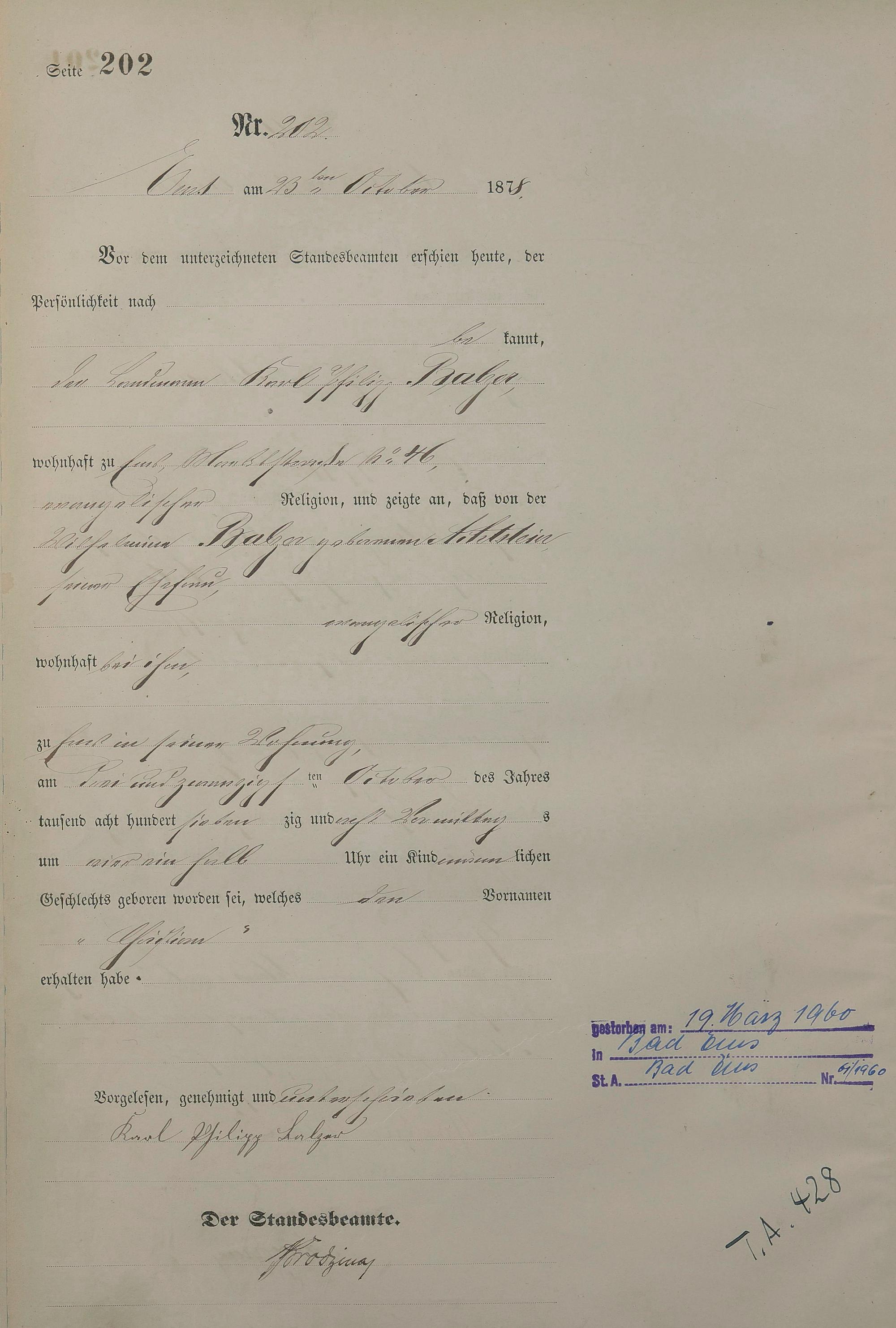 Geburtsregister 1878