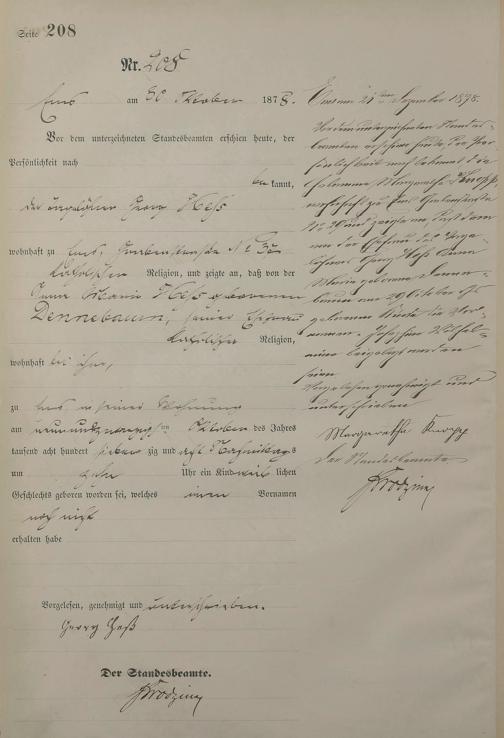 1254: Geburtsregister 1878