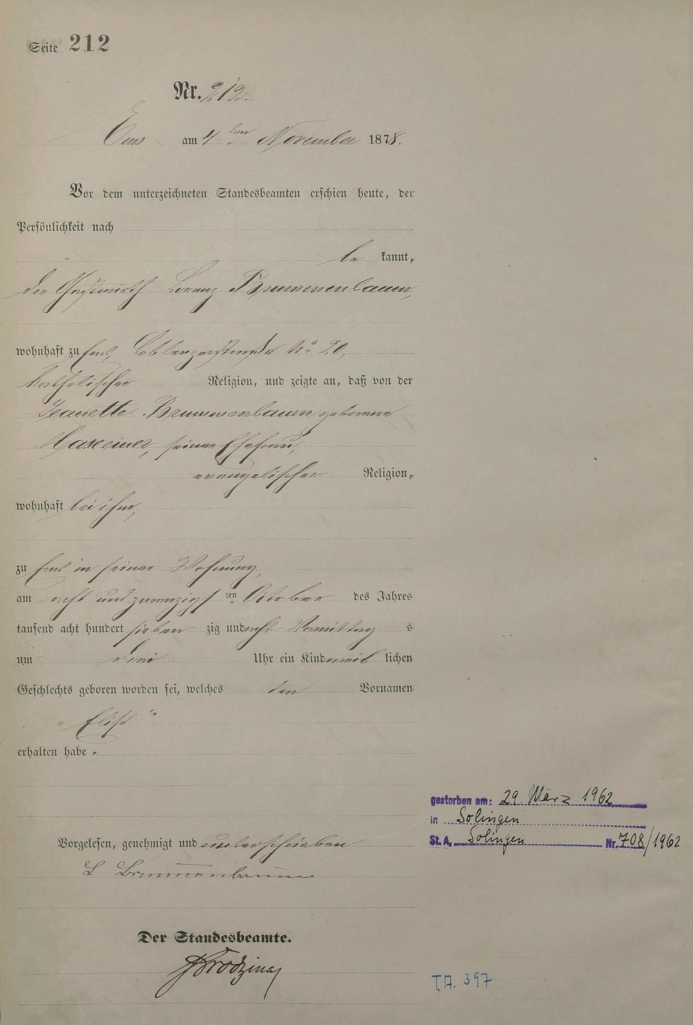 Geburtsregister 1878