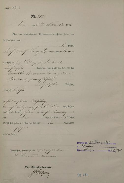 1254: Geburtsregister 1878